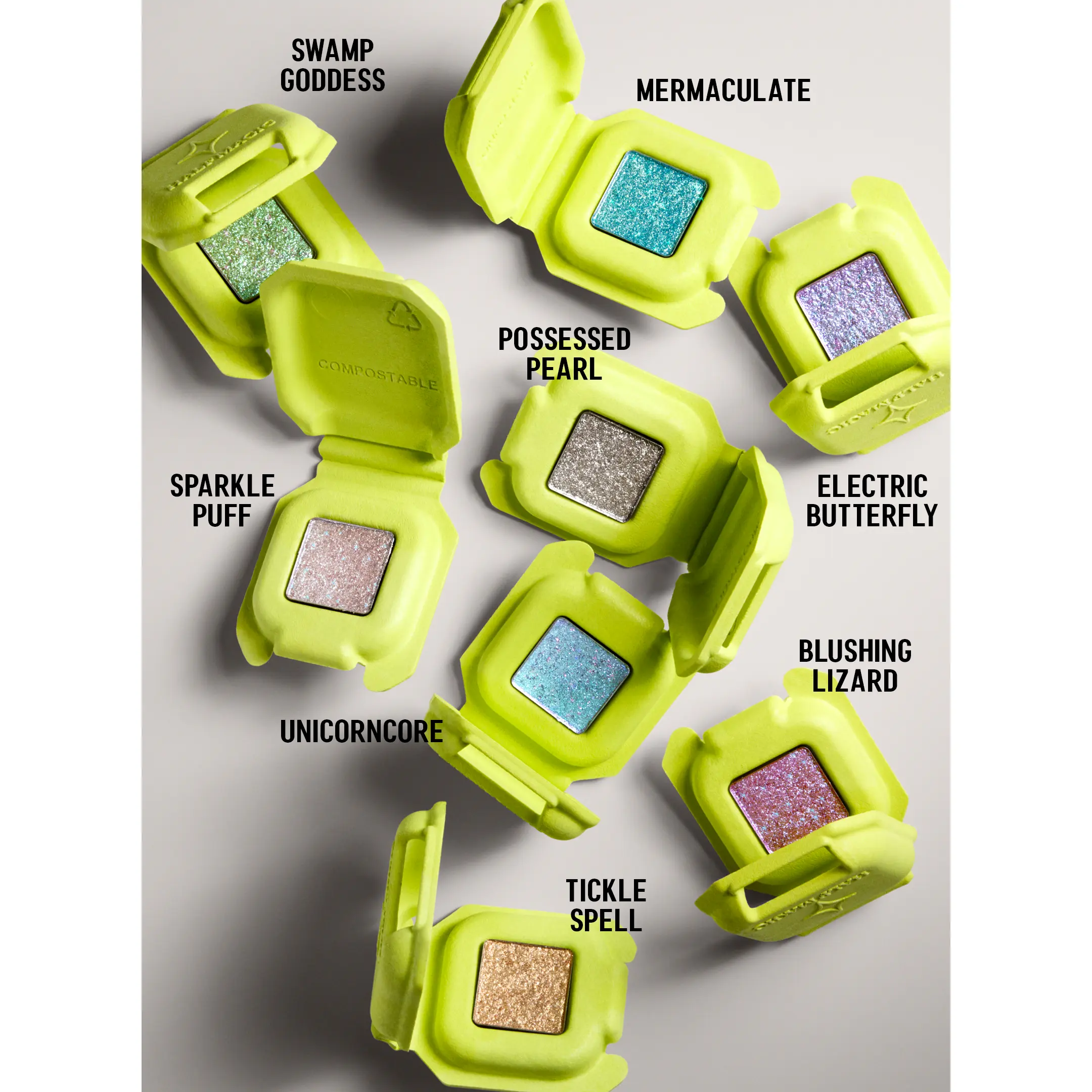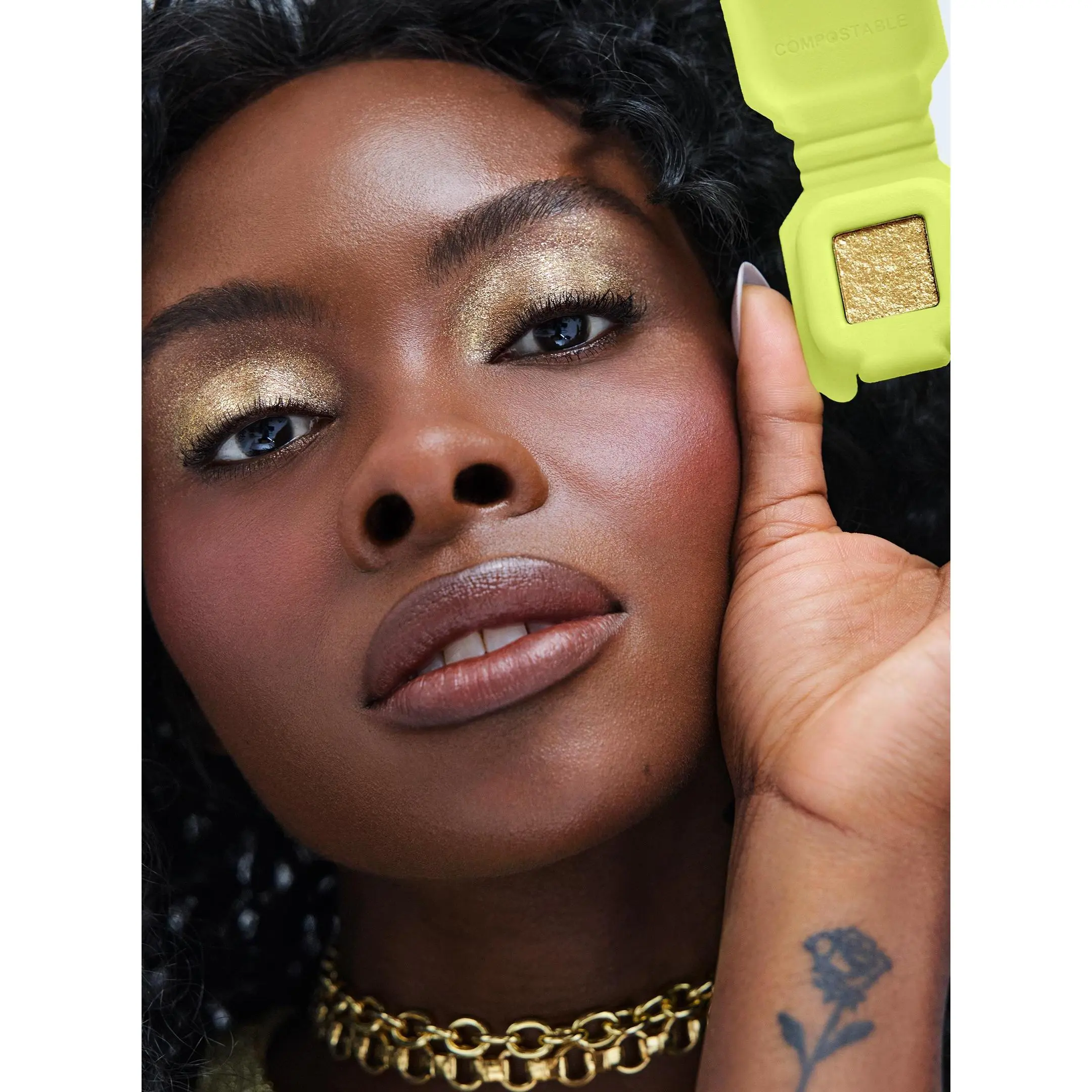 Sumptuously buildable eyeshadows, each tucked away in a pocket-sized, first-of-its-kind, compostable compact. When you've curated a collection of these singles that is uniquely you, pop each shadow into your own custom "FOREVER" PALETTE, and let either curbside recycling or home composting give your PaperFoam® compacts another life.
