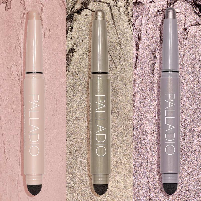 Isododecane, Cyclopentasiloxane, Mica, Synthetic Wax, Hydrogenated Polycyclopentadiene, Trimethylsiloxysilicate, Synthetic Beeswax, Coco-Caprylate/Caprate, Hydrogenated Castor Oil, Polyisobutene, Oryza Sativa Bran Cera, Silica Dimethyl Silylate; Aluminum Hydroxide, Argania Spinosa Kernel Oil, Ascorbyl Palmitate, Ethylene/Propylene Copolymer, Helianthus Annuus Seed Oil, Phenoxyethanol, Simmondsia Chinensis Seed Oil, Synthetic Fluorphlogopite, Tin Oxide, Tocopherol, Tocopheryl Acetate [+/- (May Contain/Puede Contener/Peut Contenir): Titanium Dioxide (CI 77891), Iron Oxide(CI 77491), Iron Oxide (CI 77492), Iron Oxide (CI 77499)]Presenting the "Gleaming Rose Quartz Trio" - a set of three Palladio waterproof Eyeshadow Sticks specially curated to bring out the beauty of your eyes and take your makeup to new heights. This trio showcases an enchanting array of shades, including "Matte Rose," "Taupe Shimmer," and "Silver Mauve Shimmer," each thoughtfully chosen to complement any occasion, from casual daytime outings to glamorous evening affairs.