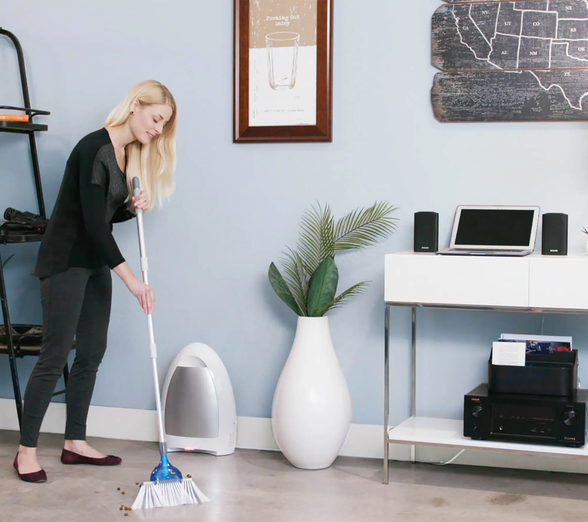 The EyeVac can suit any interior design style and even double as a conversation piece. Inspired by the falling hair in salons, the EyeVac can even pick up pesky everyday messes like pet fur or kids' food spills. Because the EyeVac is easy to operate, it can effectively maintain more particular surfaces like hardwood.