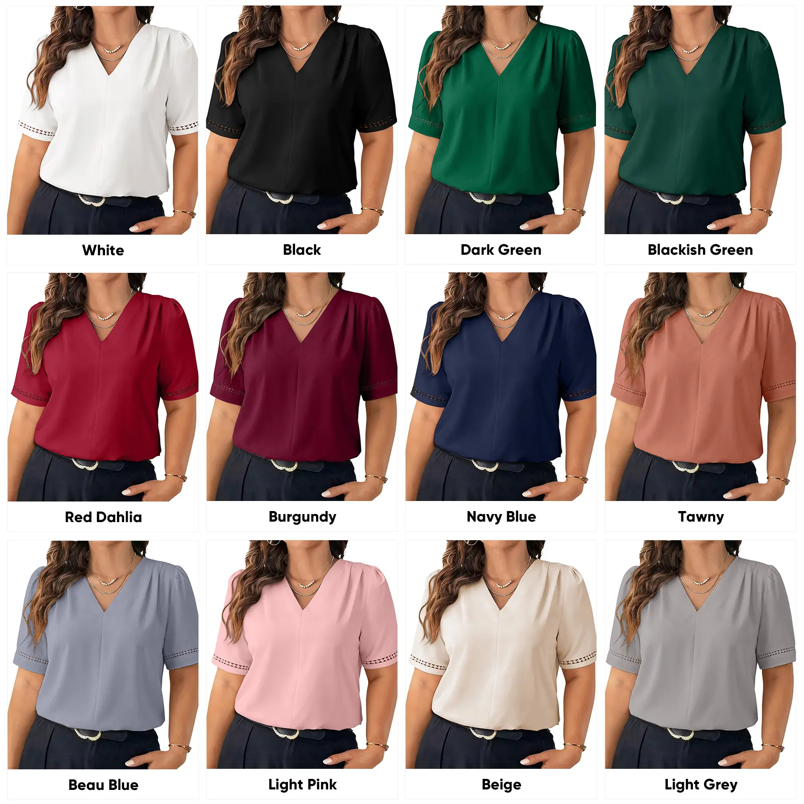 ·Soft Chiffon Material: This plus size blouse for women is made with lightweight and soft fabric,The material is breathable,skin-friendly,high quality short sleeve tops which designed for Professional Woman