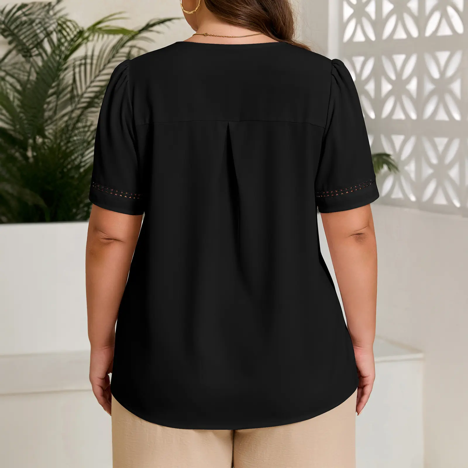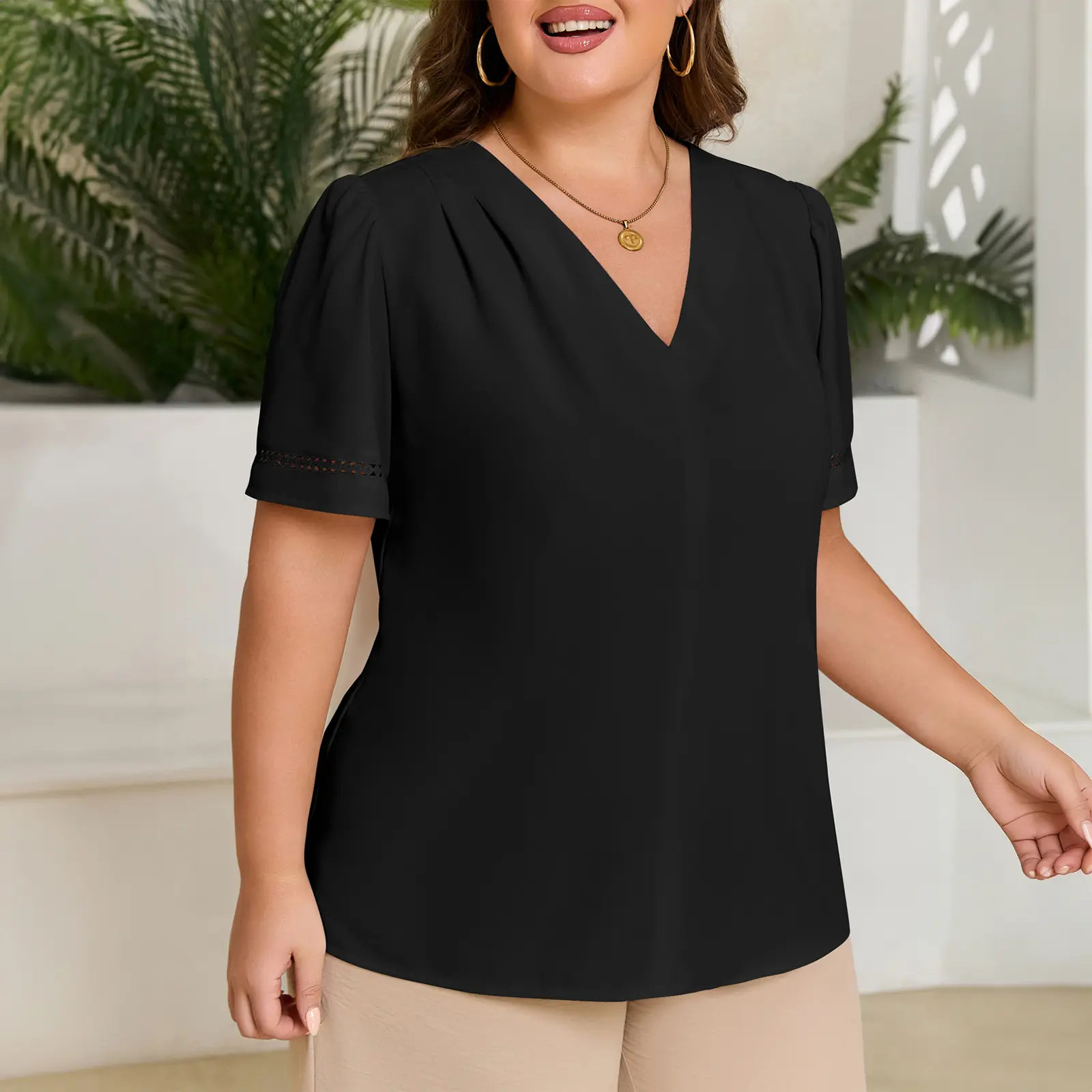 ·Chic and Versatile Design: Womens slus size tops with pleated v-neckline brings a rich sense of layering.It not only frames your slim neck, but also enhances the neckline and slims your face;hollow out ruffled cuffs can set off our slim little arm