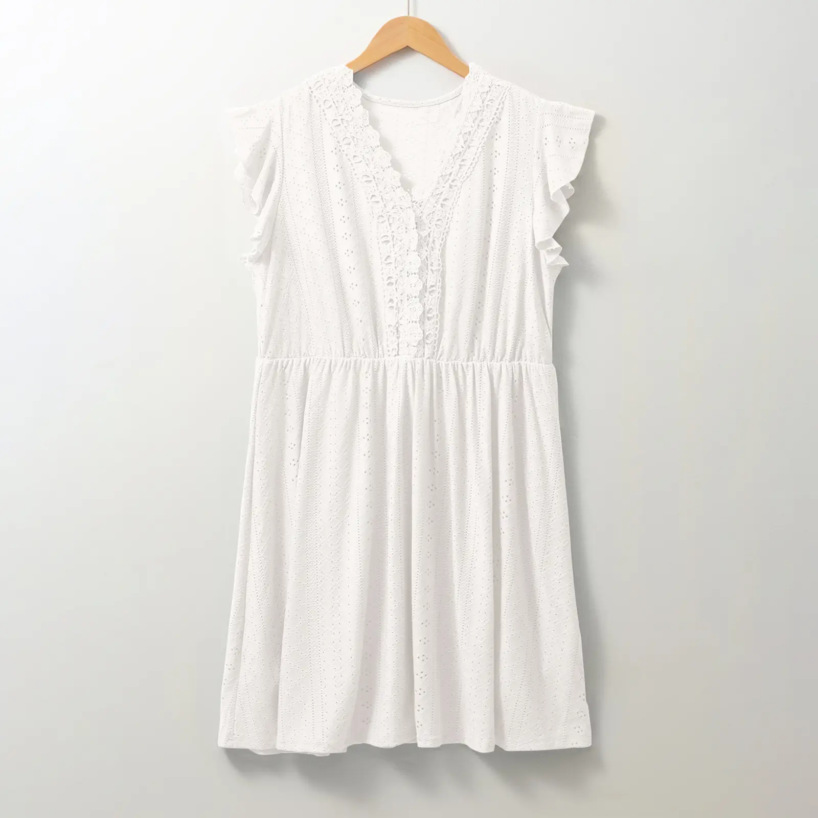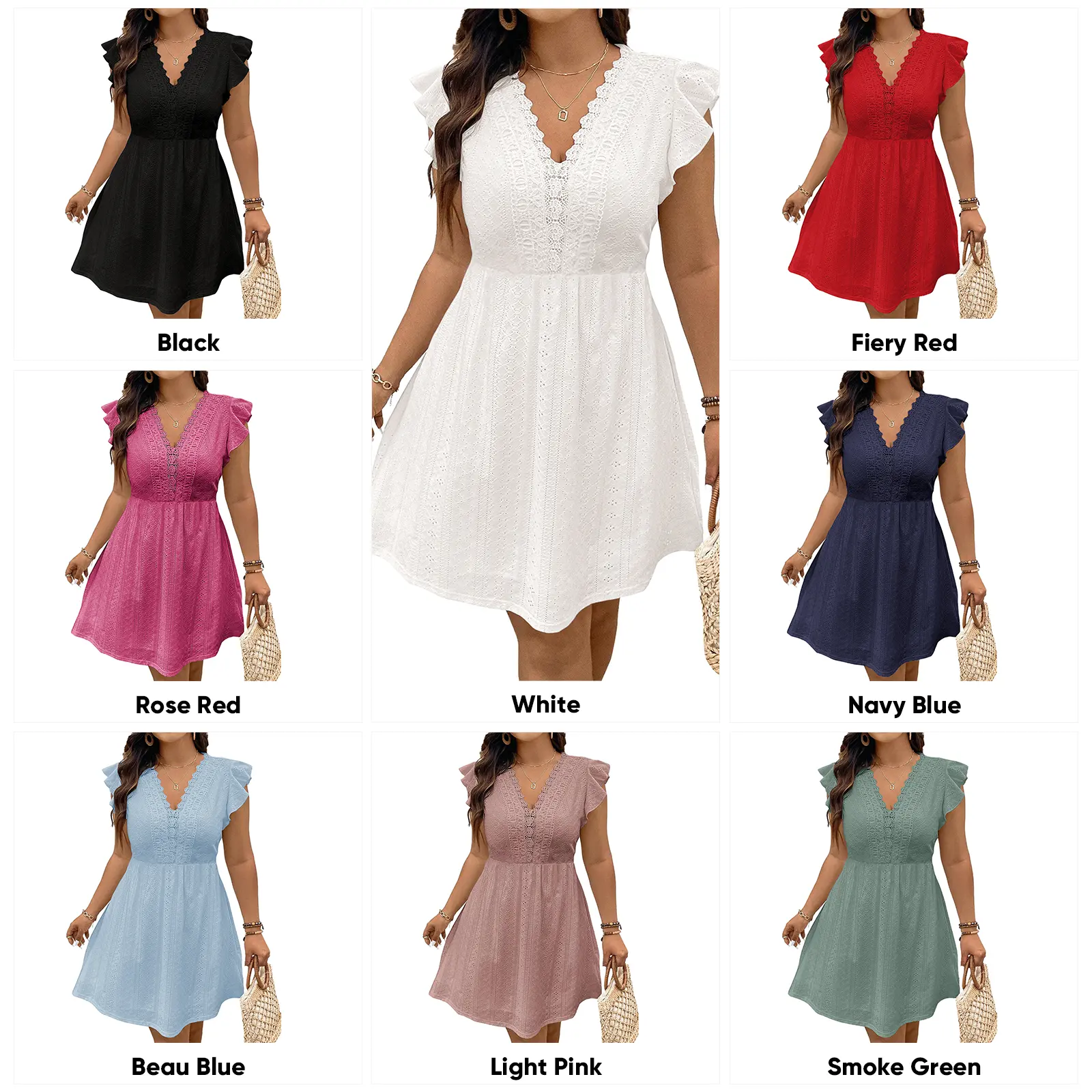 ·Features: Women plus size dresses with ruffled cap sleeves,lace v neck patchwork,embroidery eyelet,loose fit,solid color,boho mini dress,this plus size dresses fit any body shape,making every woman look effortlessly chic and feminine