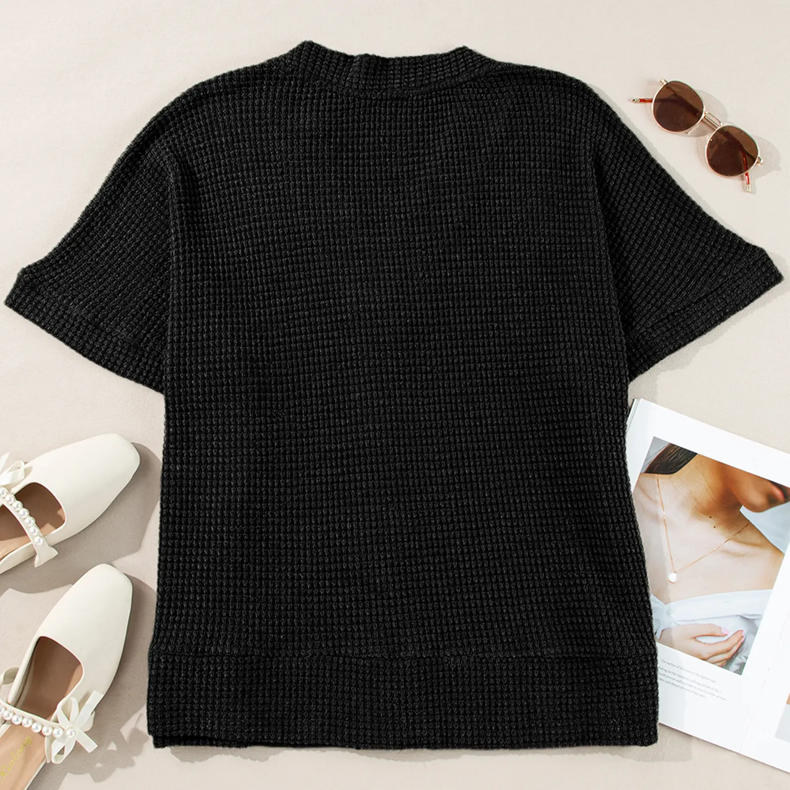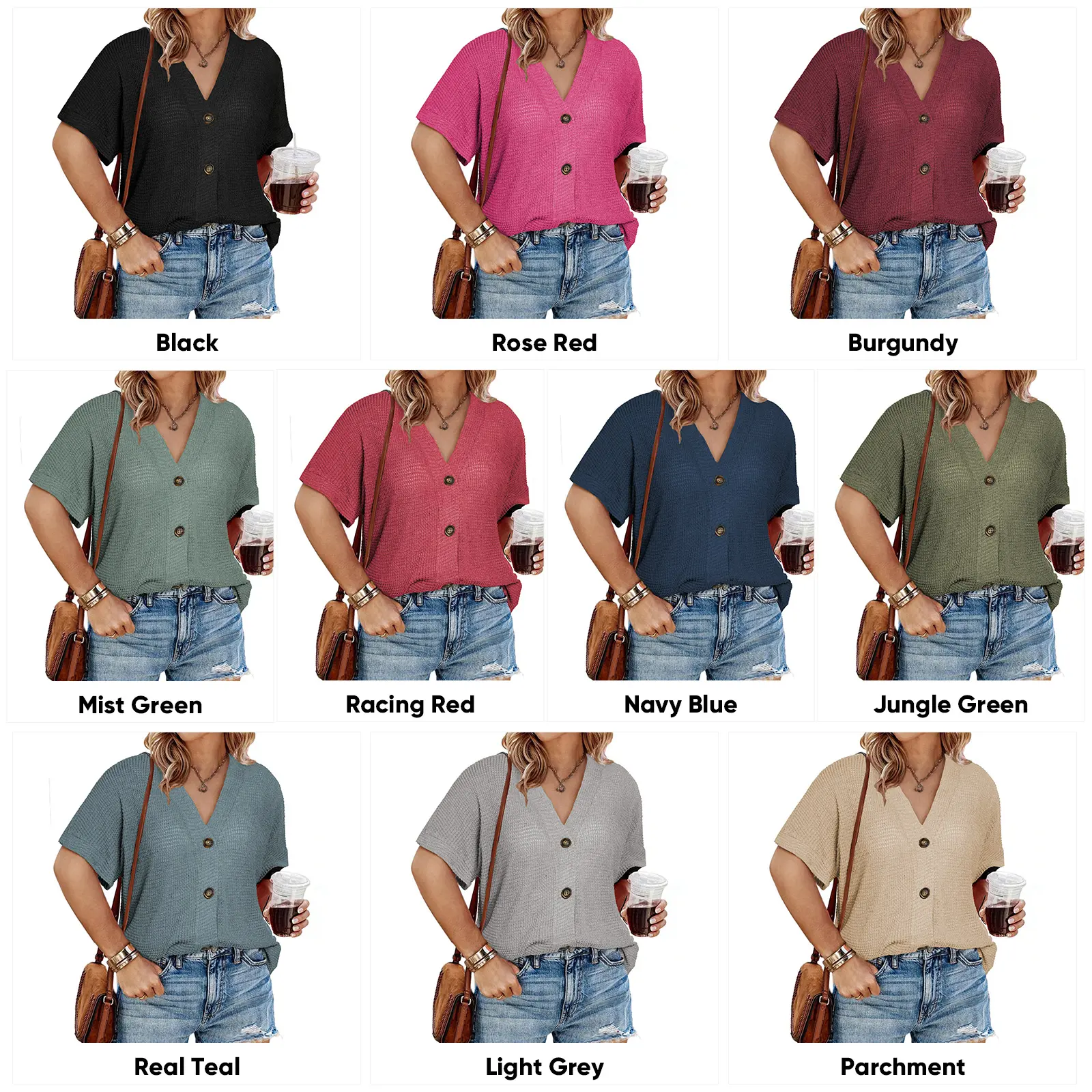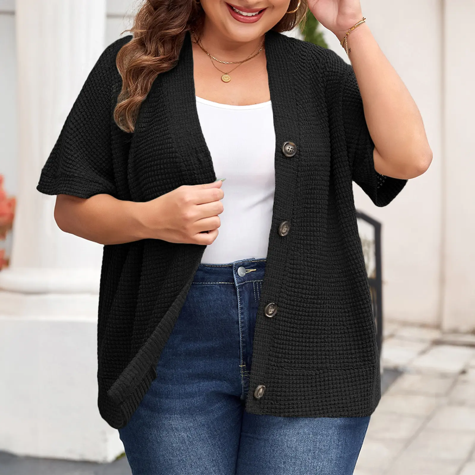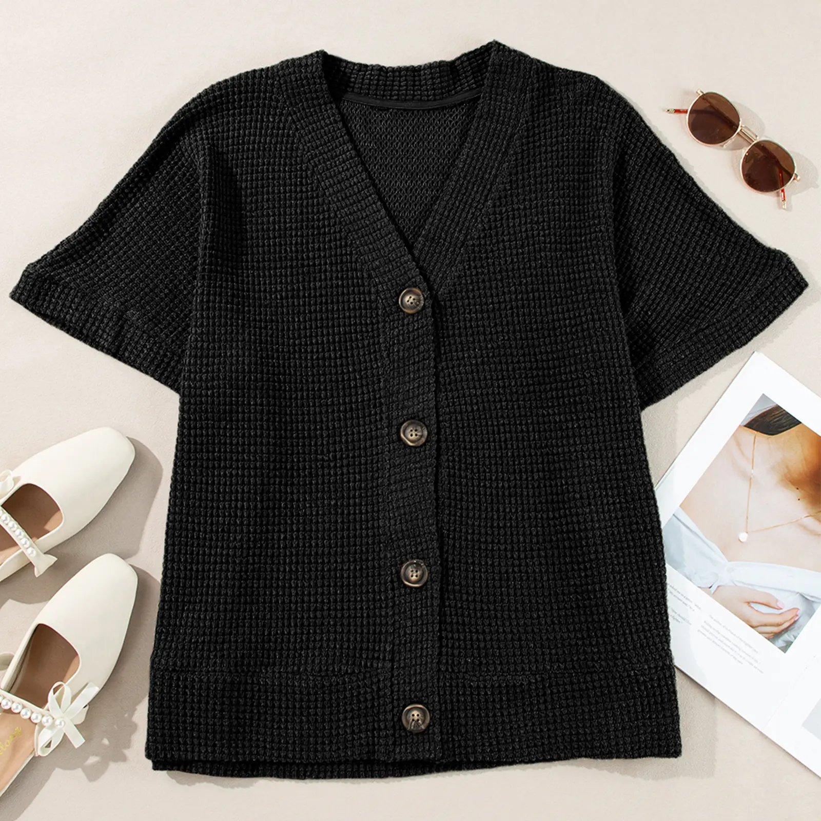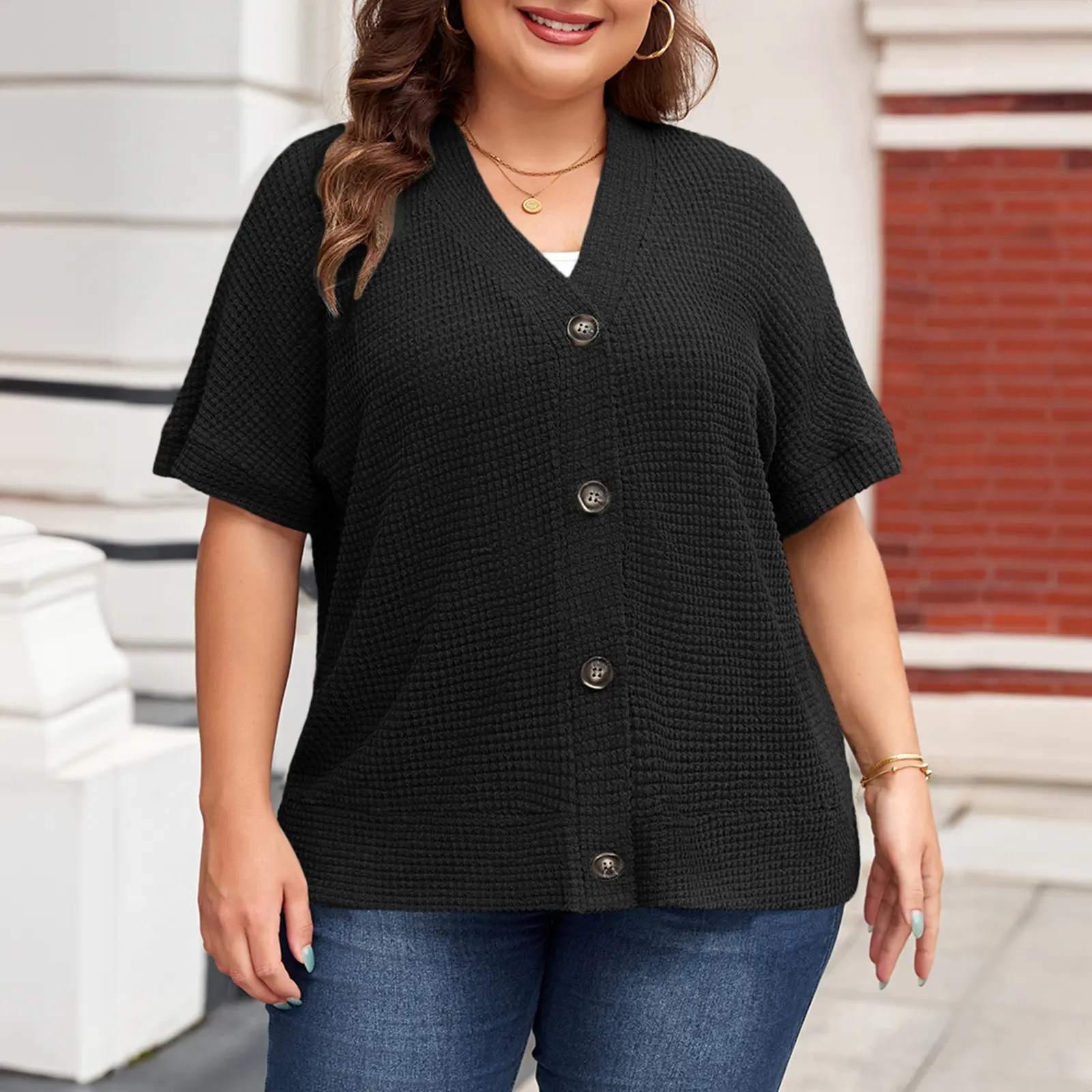 ·Feature: Plus size tops summer casual cardigans,waffle knit shirt with v neck,short sleeve summer tops blouse,button up t-shirt, button down closure and loose fit