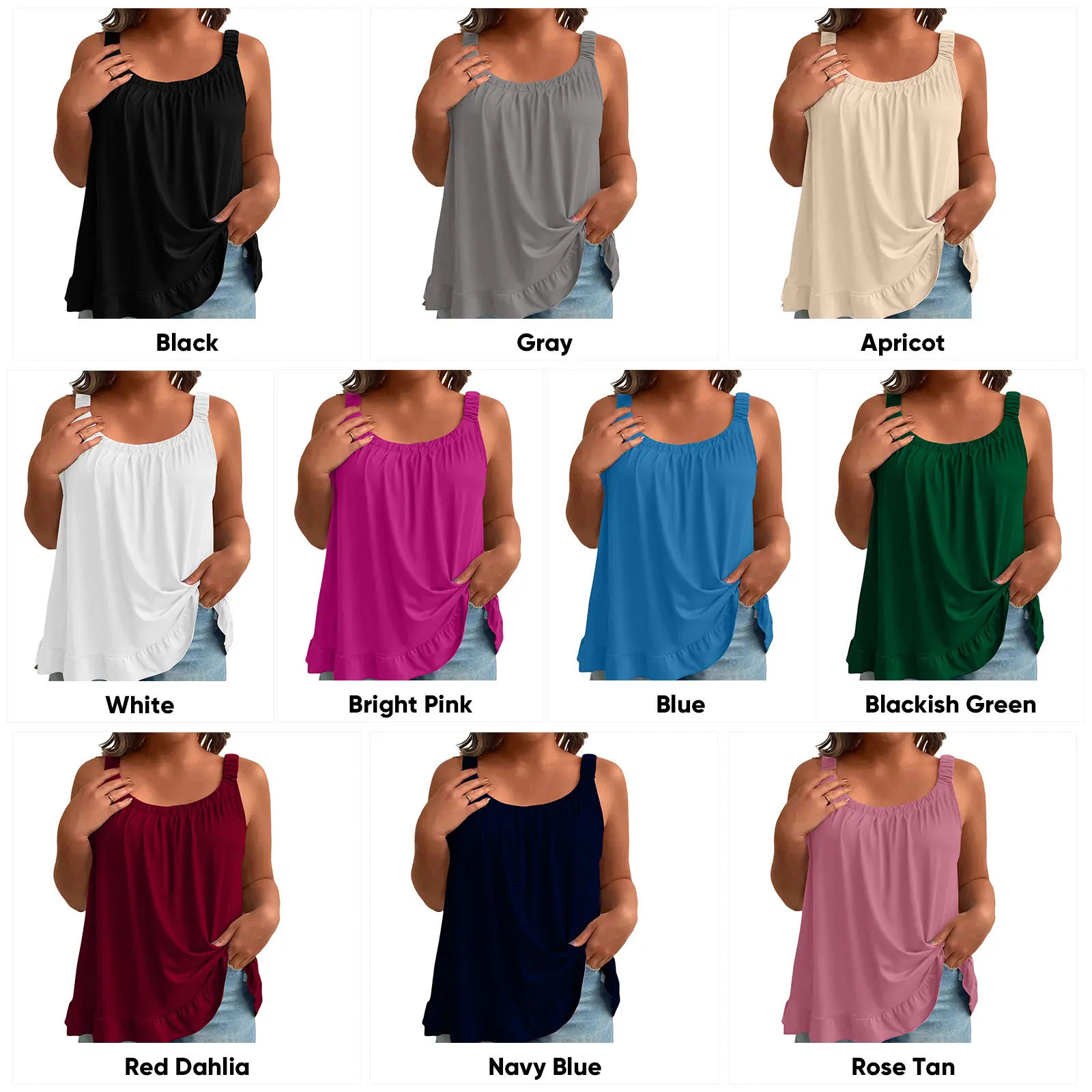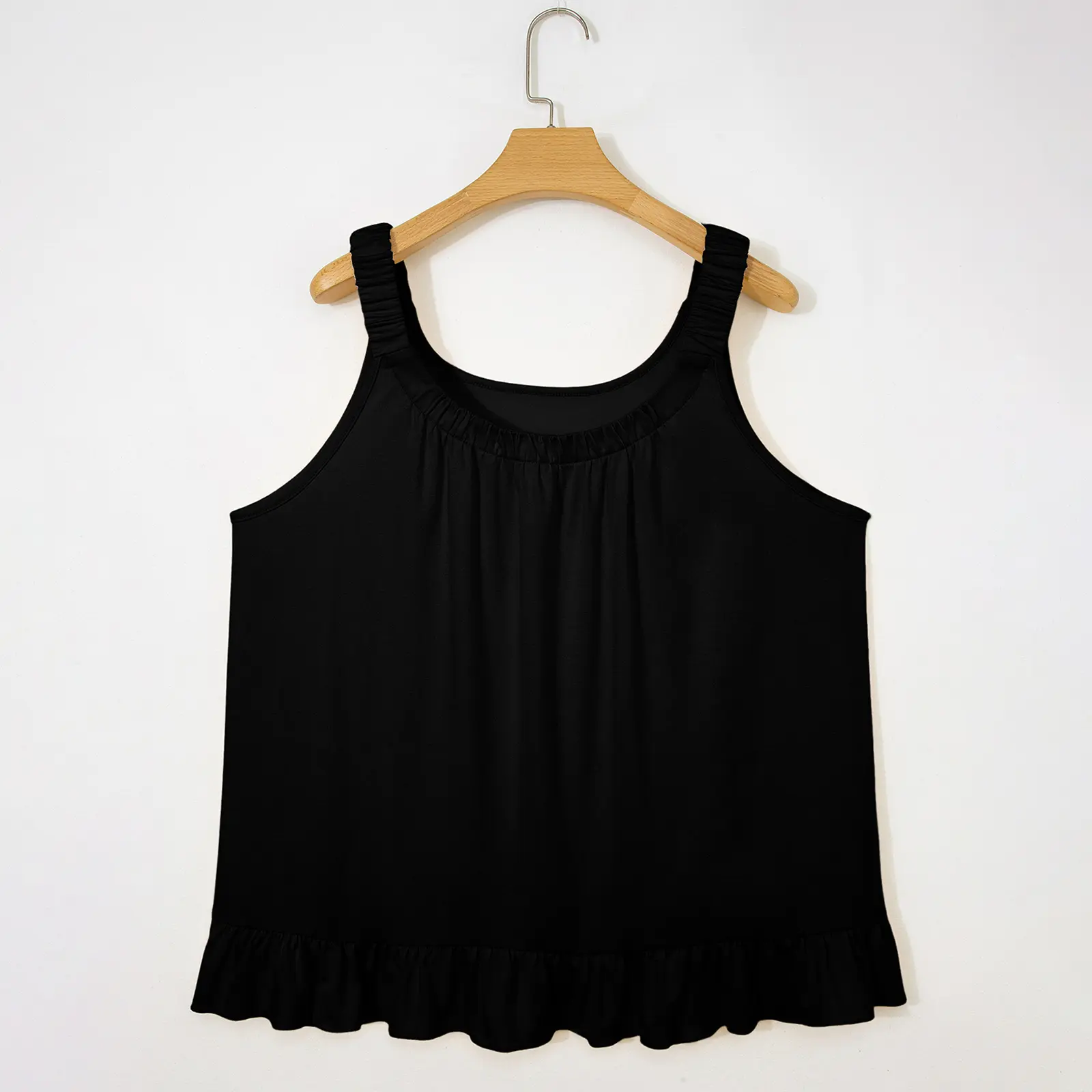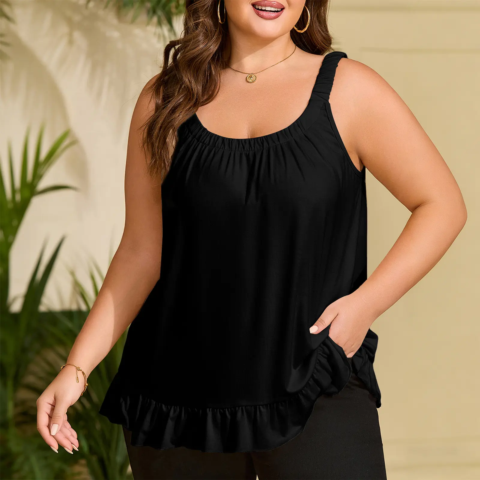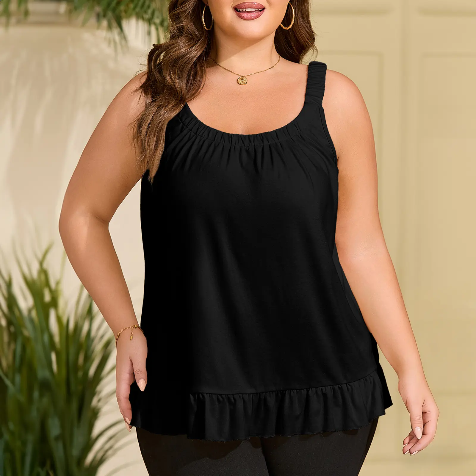 ·Features: Womens plus size summer tops are design with unique scoop neck, pleated on the chest, solid color, ruffle hem, loose causal style, the thickened shoulder straps with elastic bands can better support clothes and are less likely to leave marks on the shoulders, tunic length provides a flattering slimming effect