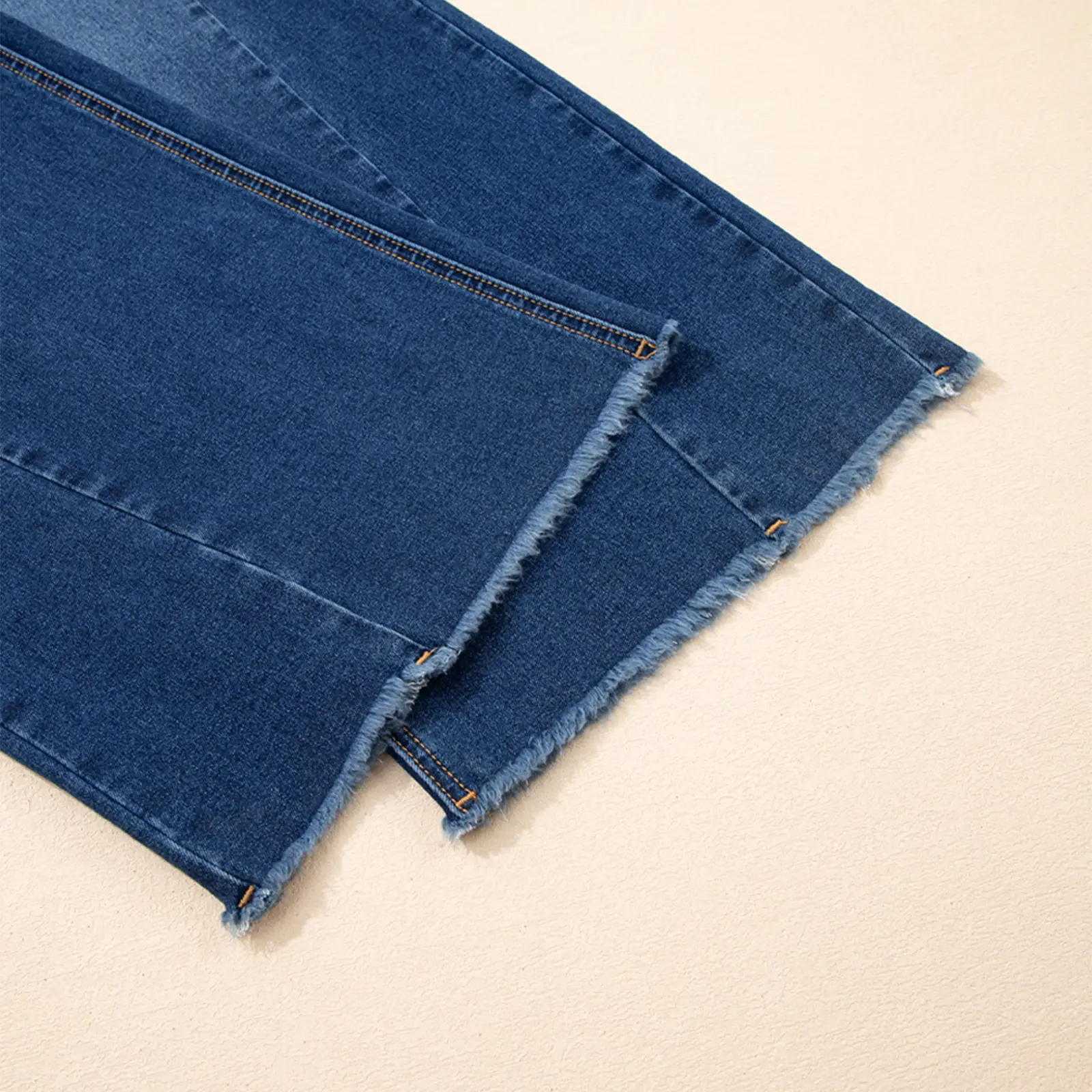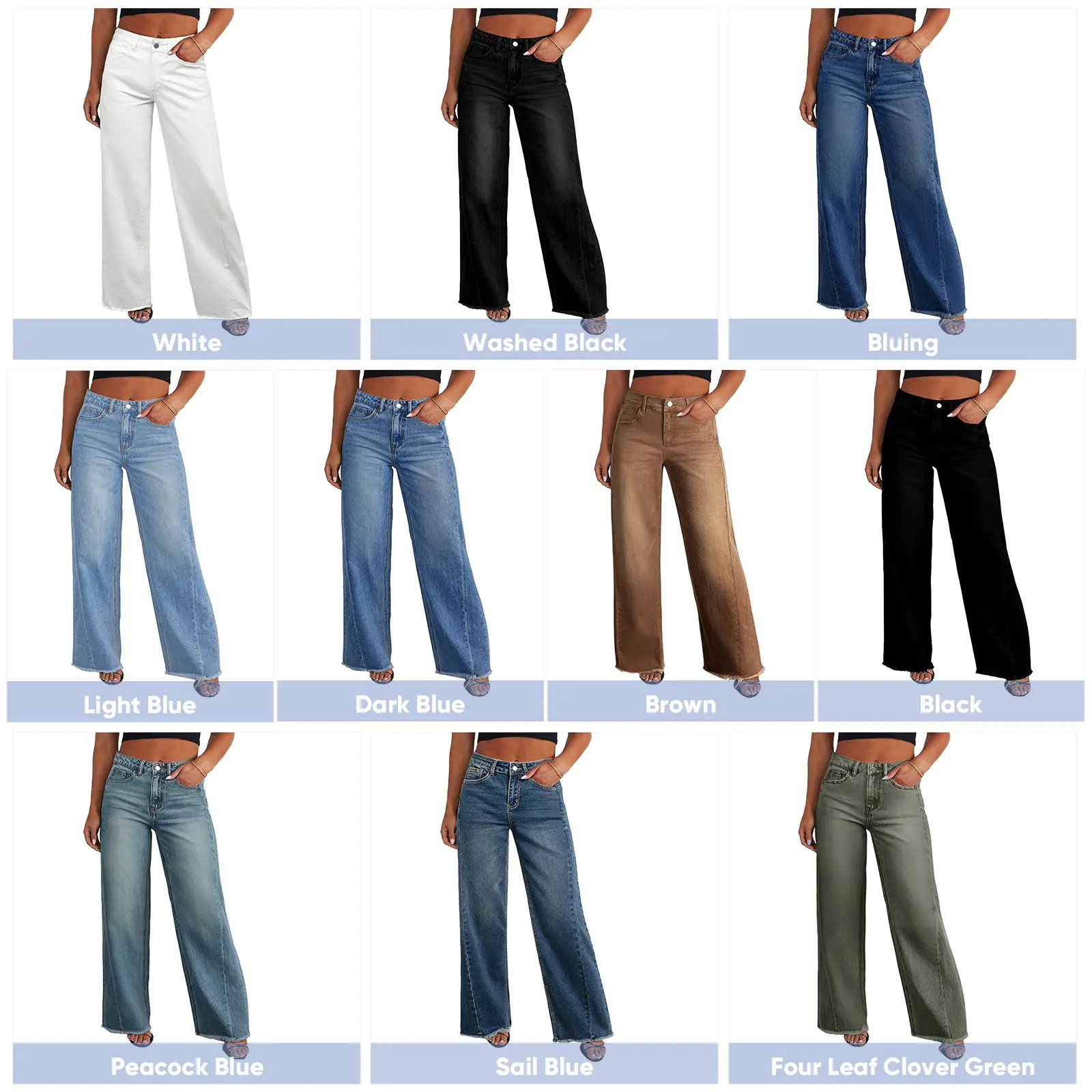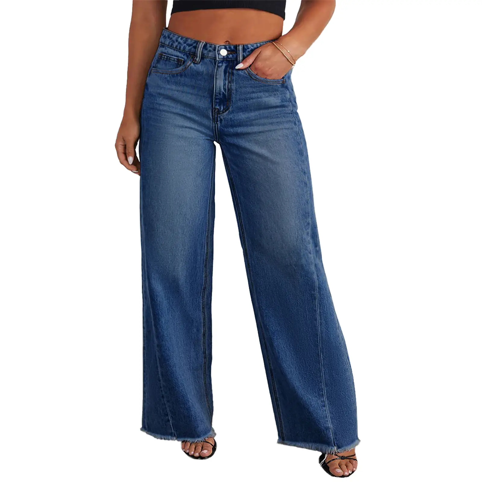 ·Design: Plus size wide leg jeans features elastic high waist, raw hem, side seam, loose fit, zipper and button closure, basic five pockets. Wide leg style can flatter a variety of leg types, providing ample room for movement and breathability