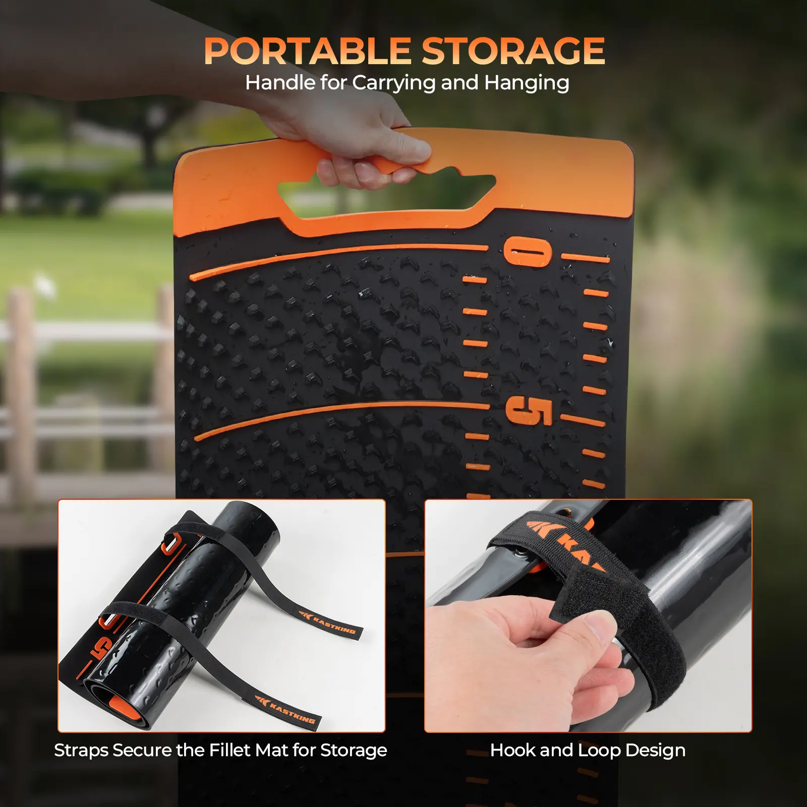 ·ANTI-SLIP PORTABLE FISH FILLET MAT: KastKing EZ Fillet Fish Fillet Mat Combo features a unique anti-slip texture ensuring that the fish remains stable on the mat for easy handling, measuring, and filleting. This fish cutting board is portable and features convenient storage straps for easy roll-up storage. Hook-and-loop closure design allows for quick access, making it both convenient and efficient