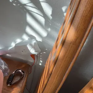 Mine is crooked because I wanted it as close to me as possible and if I would have put it straight up it would be a reach or straight to the side, also would have been a reach. It’s easily accessible like this and my night stand isn’t a half foot away from the wall anymore.