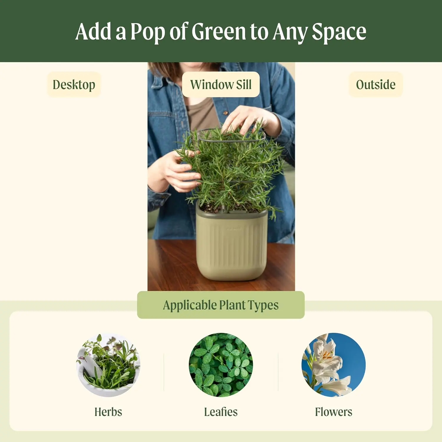 ·Innovative Watering System in Raised Garden Planter: A reliable and efficient solution for delivering water to your plants without having to worry about overflow. The water storage volume of the herb planter box is about 1.1L, fill it once to water your planter for up to 15 days! This innovative design gives new gardeners a hassle-free way to start growing in your room and desk!