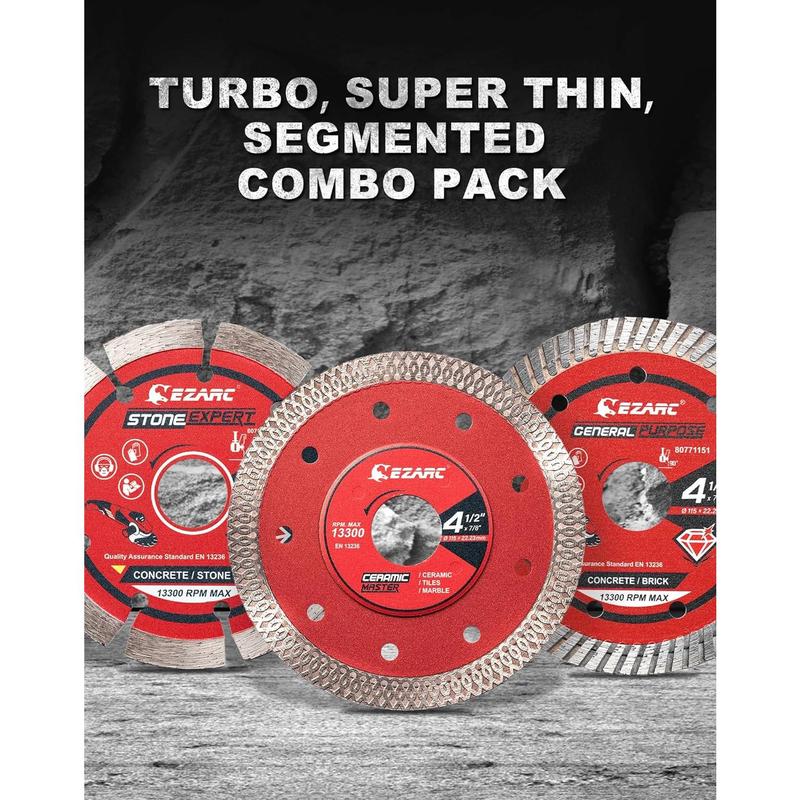 EZARC 4 1/2 inch diamond cutting wheel have a 5/8 inch arbor making them compatible with tools such as: grinders, angle grinders, rock saw blades & concrete saws. Disc Size: 4.5 Inch; Segment Height: 10mm; Maximum: 13,300 RPM.