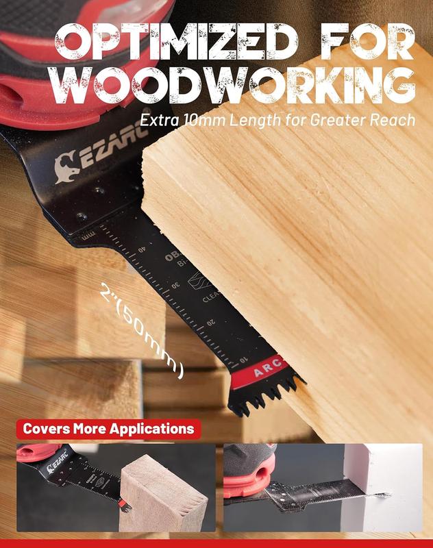 ·【Smoother and Cleaner Cuts】 Engineered with precision, the triple-ground Japanese teeth in EZARC multi tool blades provide smooth, clean cuts, ensuring an exceptionally clean surface for your woodworking projects