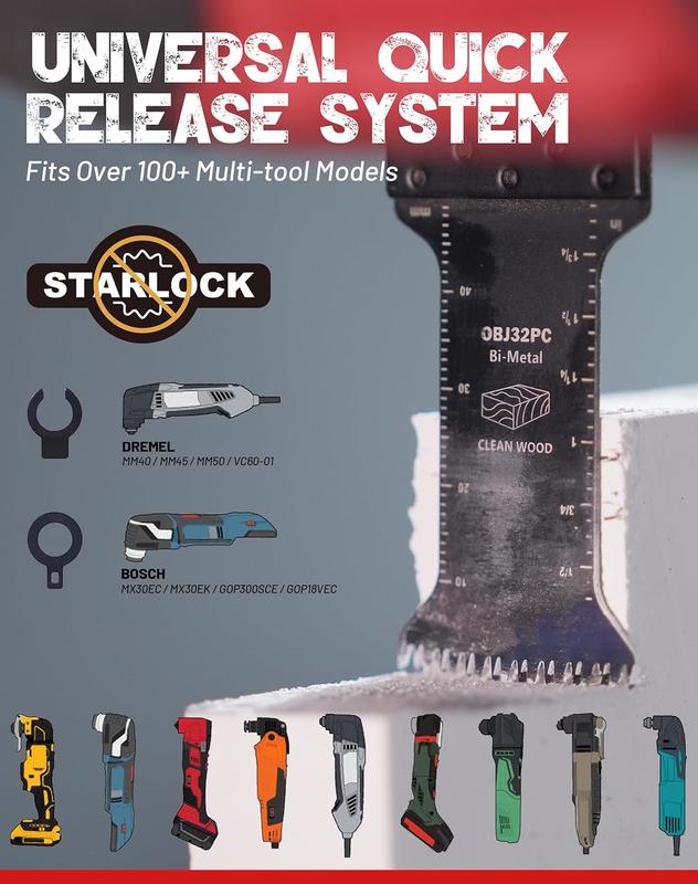 ·【Universal Compatibility】Our quick release oscillating saw blades with universal interface system are compatible with most brands of oscillating tools on the market like Dewalt, Diablo, Milwaukee, Rockwell, Craftsman and More. NOTE: Not recommended for starlock interface systemProduct Specifications: