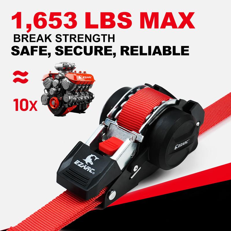 ยท1653 LBS MAX BREAK STRENGTHย - Engineered with ultra-strong polyester webbing and reinforced stitching to handle your heaviest loads safely and securely