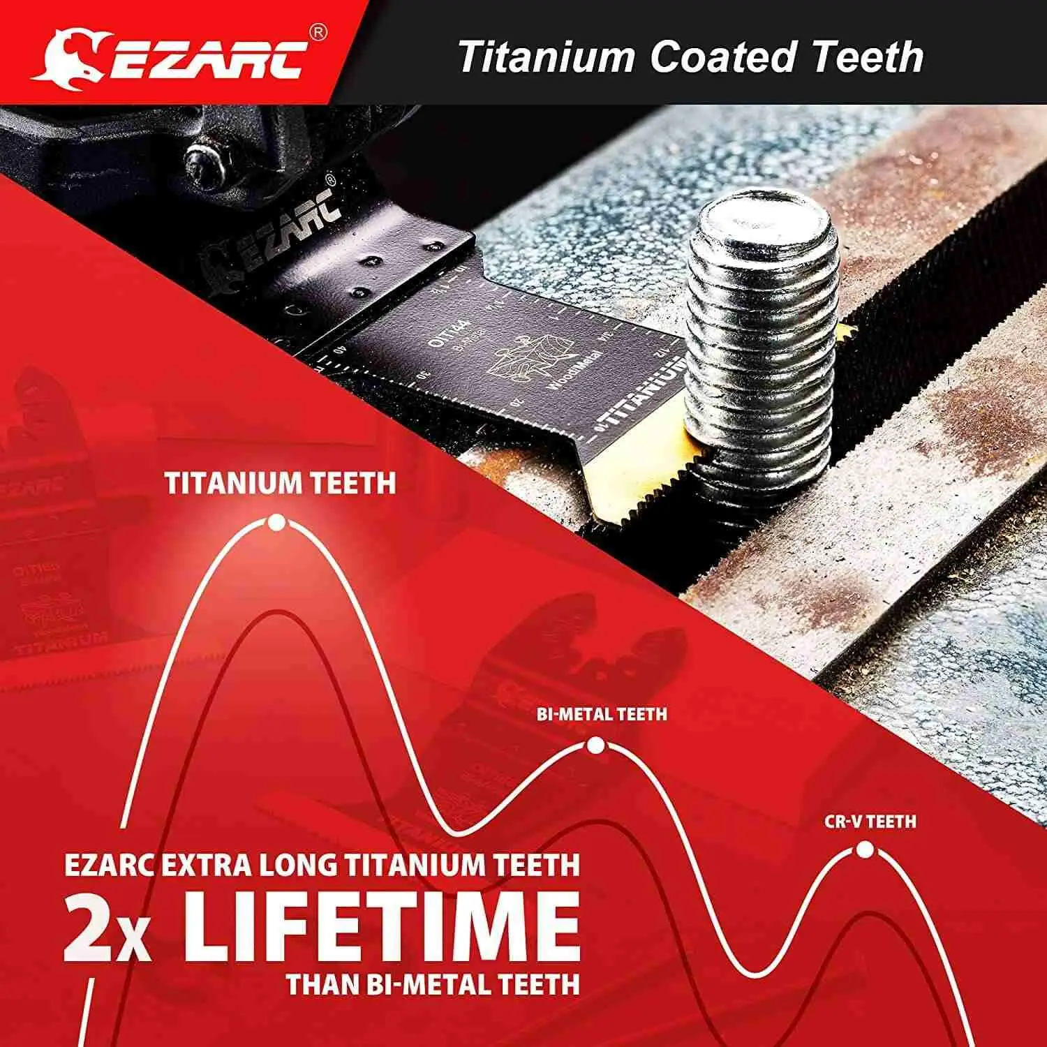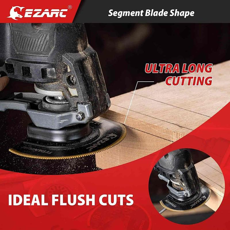 EZARC oscillating saw blades with Titanium coated teeth are 50% more durable than bi-metal oscillating multitool blades for long-lasting performance. The titanium multi-tool blades wood and metal offer 2X longer life compared with standard bi-metal blades.