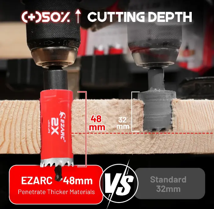 The EZARC Hole Saw Kit excels at cutting various hole sizes for tasks like desk surfaces, door hardware, furniture, lighting fixtures, and pipe installations. It performs well on thin metals, softwood, plywood, plastic sheets, drywall, and PVC boards.