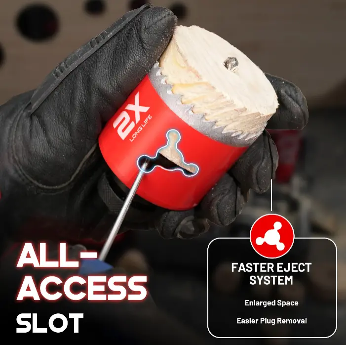 Featuring uniquely designed all-access eject slots for rapid chip clearance and reduced heat buildup, combined with 4/6 TPI variable tooth pitch for faster, cleaner cuts—this hole saw set delivers stable performance and high cutting efficiency.
