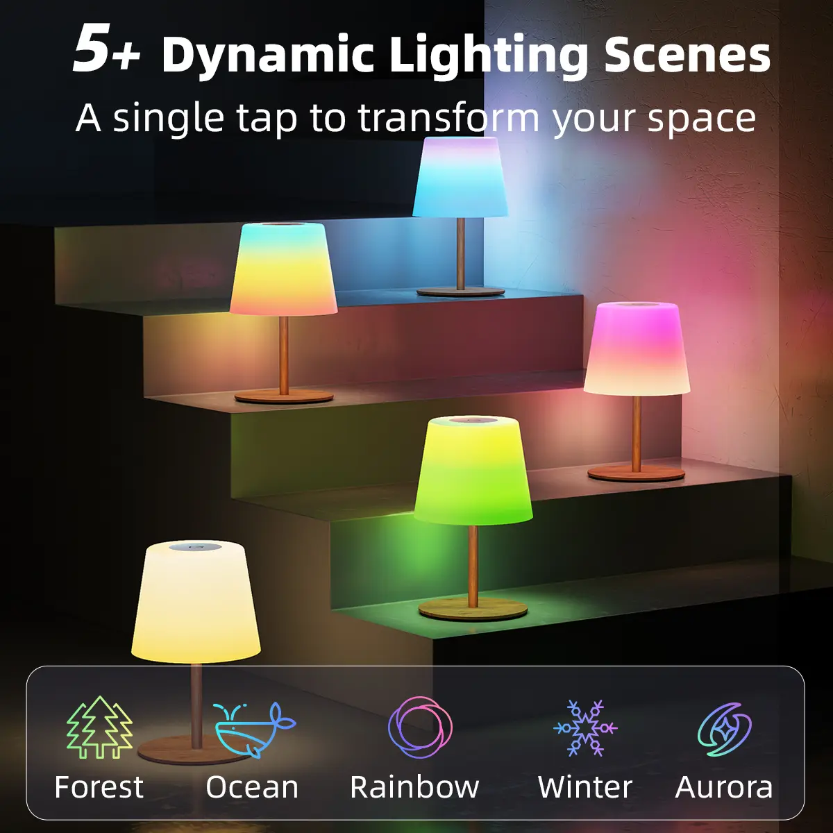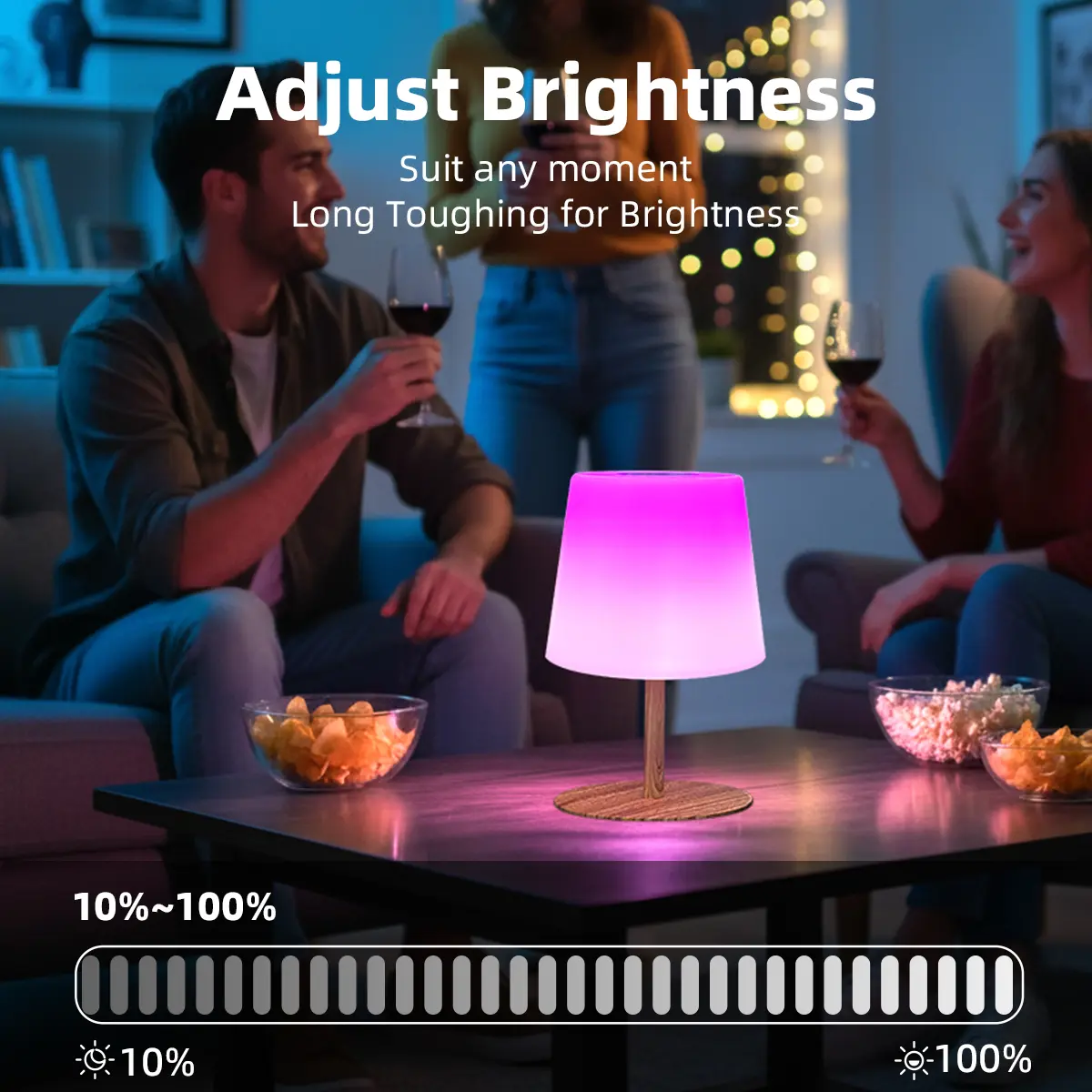 Easily adjust colors, brightness, and modes with touch control. Let your creativity shine and transform any space into a cozy, festive, or party-ready atmosphere.(Press the ON/OFF switch at the bottom of the lampshade before first use)