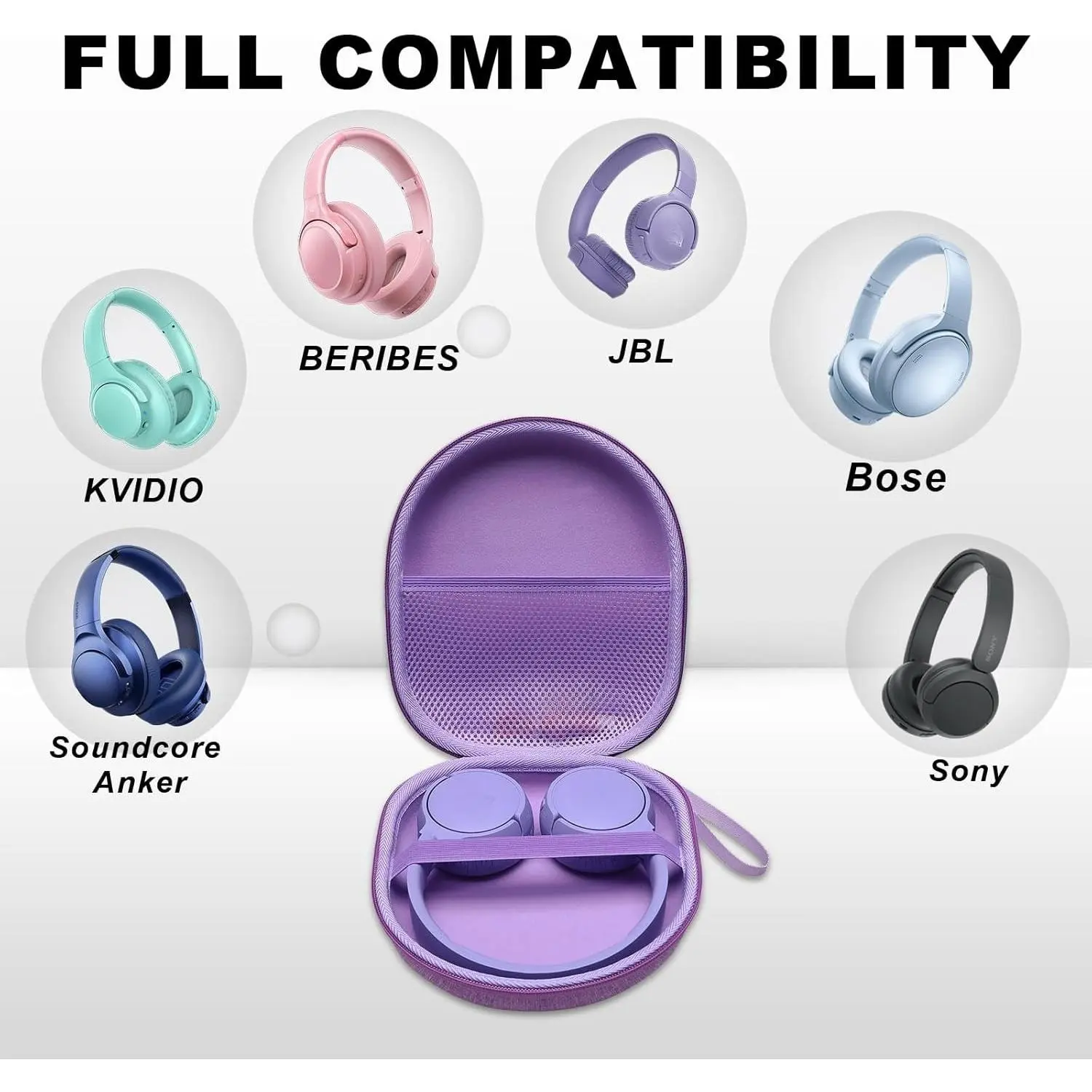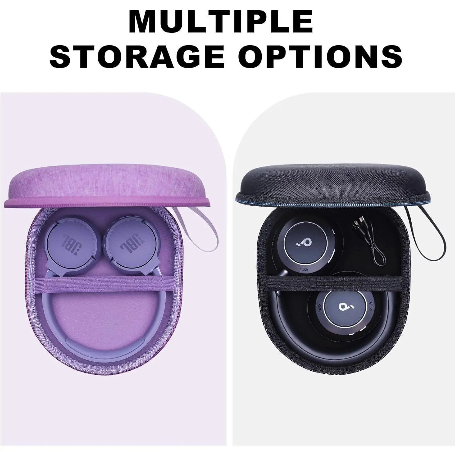 Headset Case: Small lay-flat headphone case perfect fits many headphones, like JBL Tune 510BT, 520BT, JBL Live 460NC, 660NC, Sony WH-CH520, Soundcore Q20, Q20i, Q30, Bose QC Series, Raycon, so on.