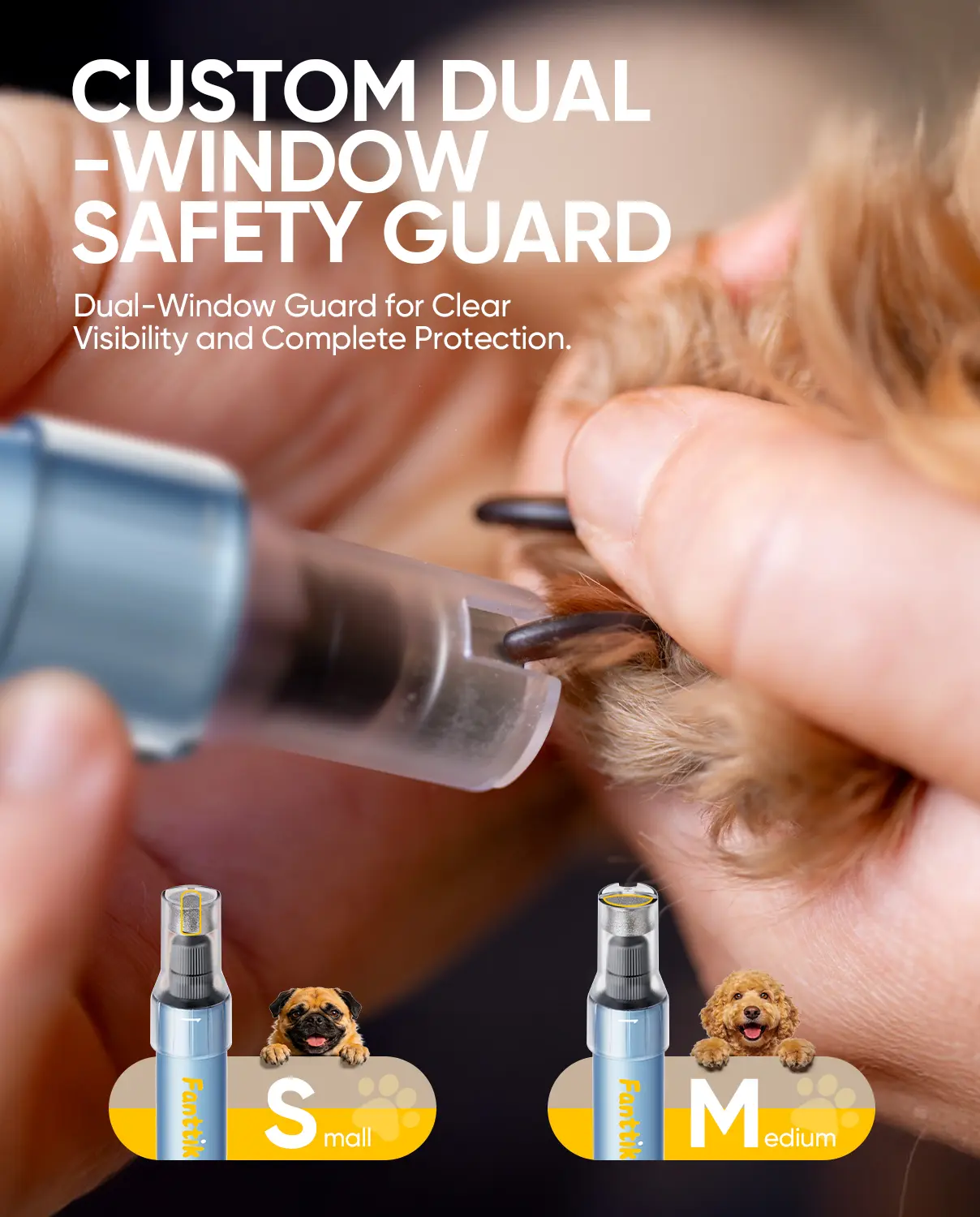 ·Enhanced Safety Protection: Unique dual-window grinding guard adapts to different pet sizes and habits. Compared with single‑window designs, three securely locked modes provide better coverage to help prevent over-trimming and accidental skin contact