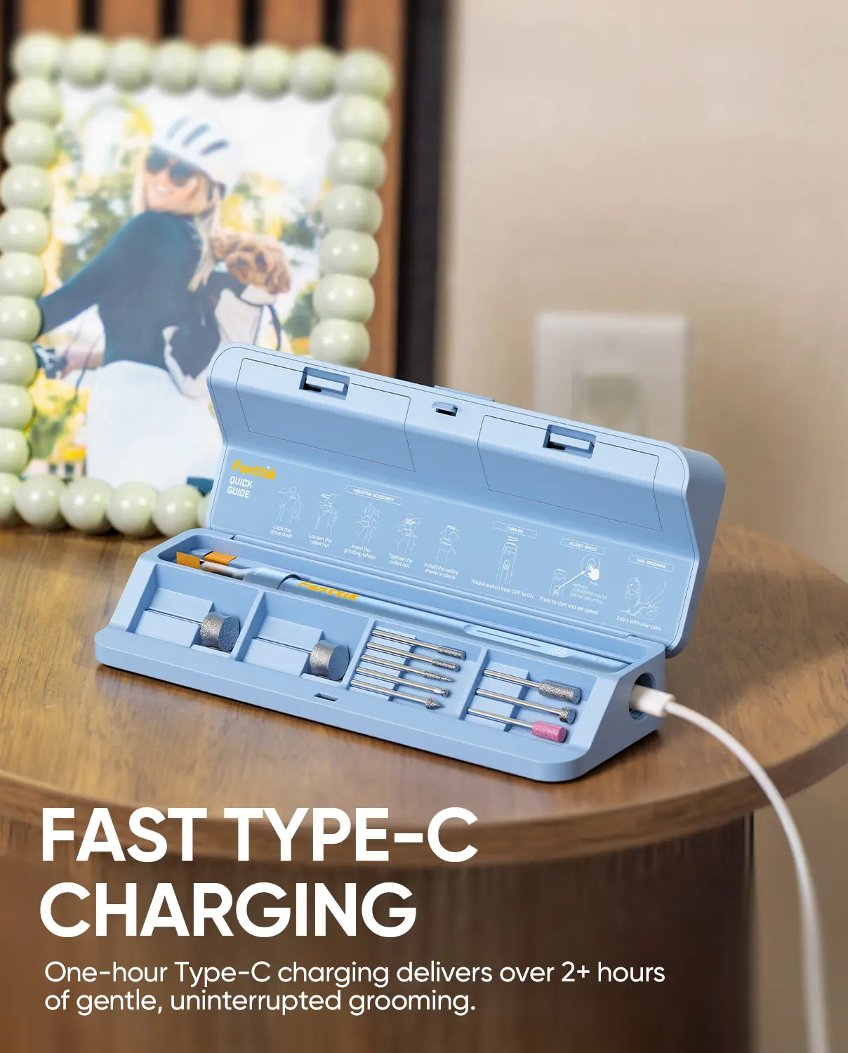 ·Long Runtime & Fast Charging: Built-in 700 mAh battery delivers over 2 hours of continuous use. Fully recharges in about 1 hour via 5V 1A Type-C charging, making this pet nail grinder suitable for long grooming sessions or multiple pets