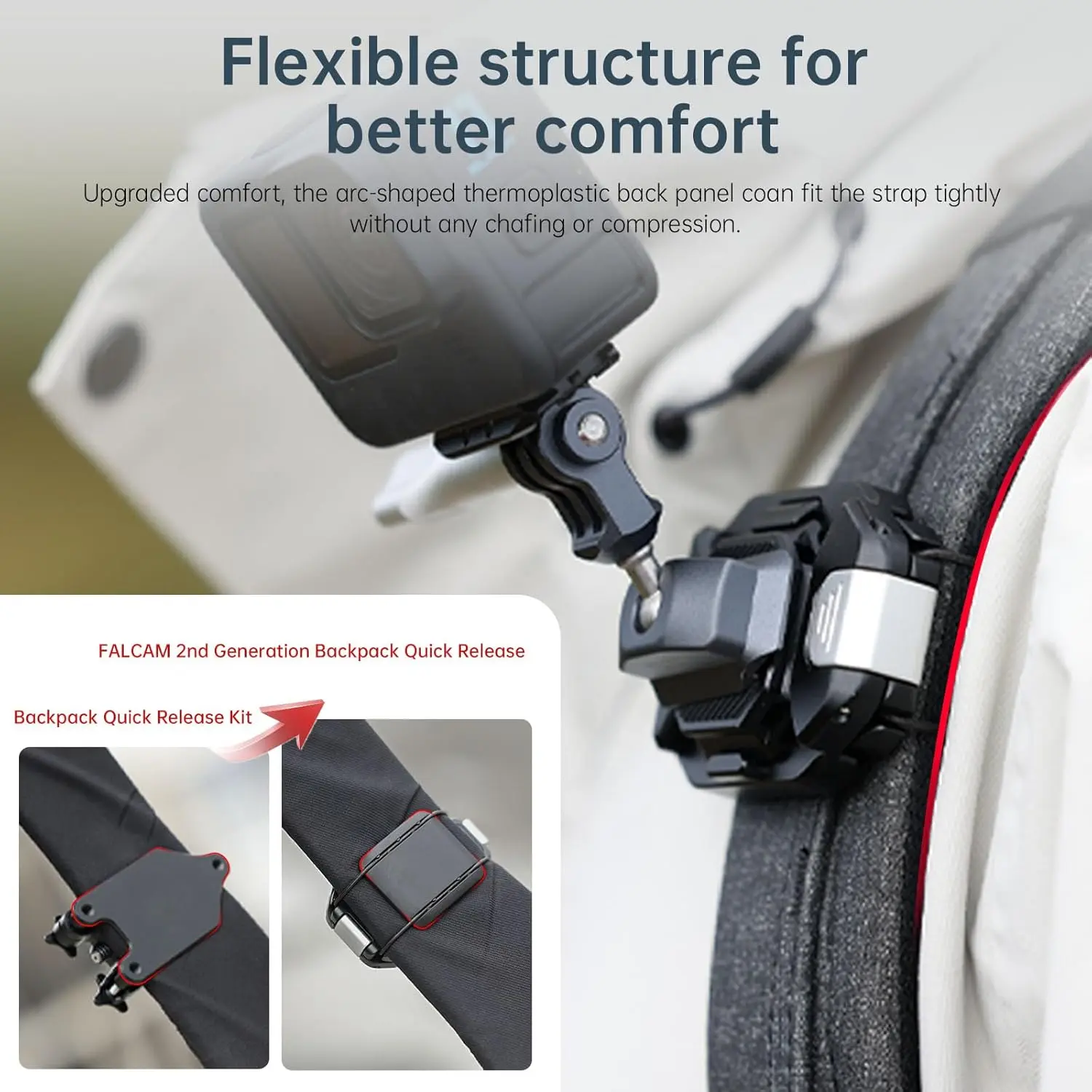 T-shaped Buckle Fixing Structure Smoother Installation. There is no need for complex screw fixing, F38 Quick Release Kit for Backpack V2 adopts lanyard + T-shaped buckle fixing structure, one click and close, it can be clamped