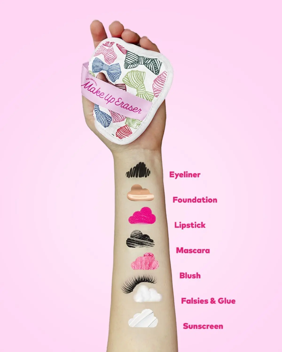 Erase all makeup with JUST WATER™ including waterproof. Our patented, water-activated, cloud-soft fibers gently & easily remove all makeup & sunscreen from pores. 2 in 1 benefit: one side erases makeup & one side exfoliates skin.