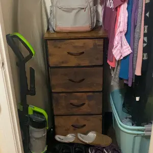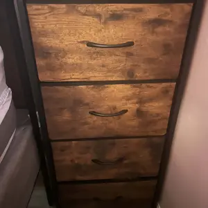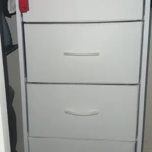 This is perfect. I need a little extra storage and this is the exact size I was looking for the four drawers pull out their large bins. It has a hardwood top that I absolutely love and I love that it comes in multiple colors. I chose white because it goes with the other furniture in the room.