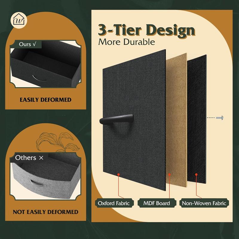 ·【Great Strong Construction】X-shaped frame on the back of the dresser improves stability; Water-resistant MDF wood top is sturdy and easy to clean; High quality fabric bins with easy pull handle are fade and stain-resistant,ensure a use period.