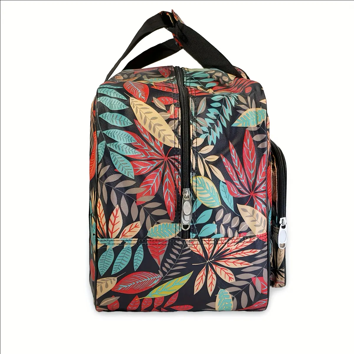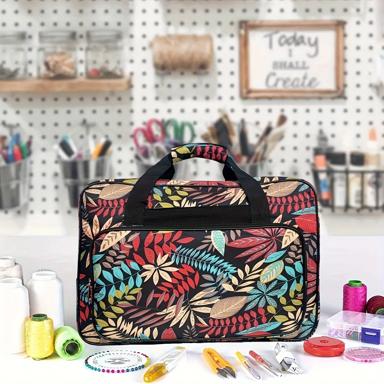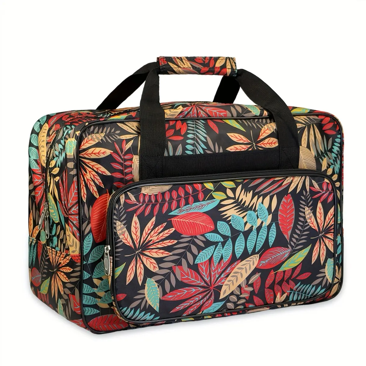 1pc Fabric Sewing Machine Carry Case with Pocket, Mixed Color Leaf Pattern, Universal Travel Tote Storage Bag for Most Standard Sewing Machines
