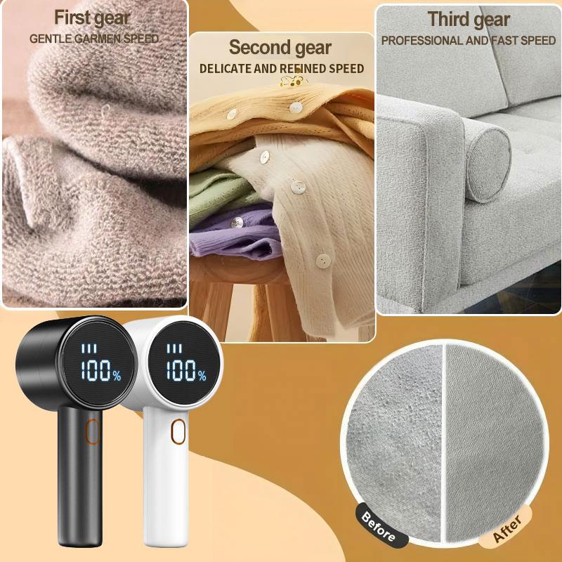 【Rechargeable Fabric shaver】Fabric shaver features a high-tech LED display that clearly shows the battery level (0-100%) and speed level. Built-in 2600mAh Li-Ion battery, fully charged in just 2 hours with up to 3.5 - 4.5 hours of operating time. The package also includes a convenient USB charging cable, eliminating the need to purchase batteries and saving you money and convenience.