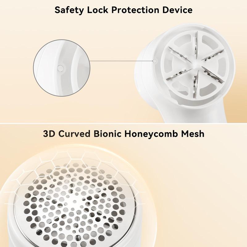 【𝟲-𝗟𝗲𝗮𝗳 𝗣𝗼𝘄𝗲𝗿𝗳𝘂𝗹 𝗙𝗮𝗯𝗿𝗶𝗰 𝗦𝗵𝗮𝘃𝗲𝗿】Our fabric shaver is equipped with 6-leaf stainless steel blades and rotating blade that effortlessly removes lint, fuzz, and pilling from various fabrics,including sweaters, blankets, upholstery, and more.
