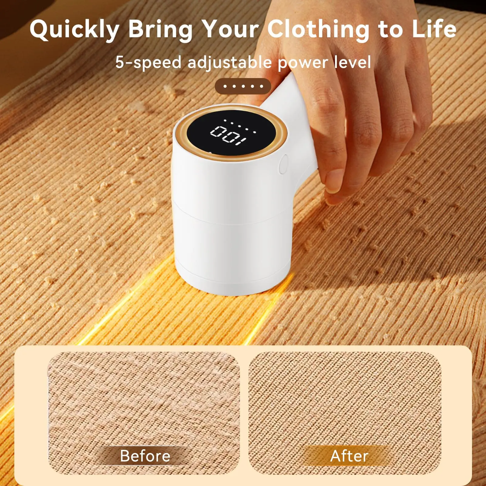 【𝟯-𝗦𝗽𝗲𝗲𝗱 & 𝗟𝗘𝗗 𝗗𝗶𝘀𝗽𝗹𝗮𝘆】User-Friendly Design 3-speed regulation system along with a real-time battery display. You can easily monitor the remaining battery life, ensuring that you never run out of power in the middle of a fabric shaving session.
