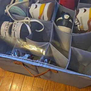 ·VERSATILE STORAGE SOLUTION: Not just for shoes, our multifunctional clost storage organizer can also hold clothing, blankets, socks, hats, toys, and other household essentials. Suitable for closets, entryways, bedrooms, living rooms, laundry rooms, garages, and campers. The shoe case bin meets a variety of storage needs, helping you to keep your home clean and tidy