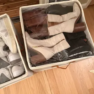 ·EASY ACCESS & CLEAR VISIBILITY: The transparent dust-proof cover lid of our shoe storage boxes facilitates the quick identification of items and keeps dust out effectively. The closet organizers and storage solutions include labeled clips for easy sorting and durable two-way zippers for smooth opening and closing, allowing for effortless footwear retrieval or storage