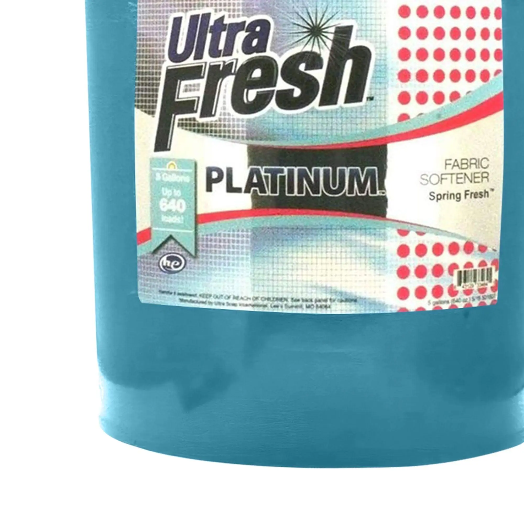 Experience the luxurious softness and long-lasting freshness of Ultra Fresh Platinum 5 Gallon Spring Fresh Fabric Softener. Designed for all washable fabrics, it softens, conditions, and adds a vibrant scent that lasts. The concentrated formula handles up to 640 loads, is compatible with both standard and HE washers, and includes a pump for easy dispensing.