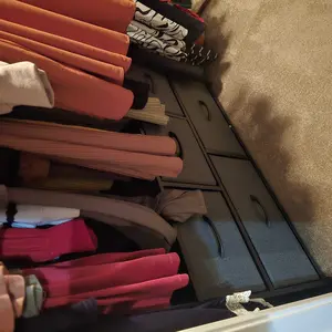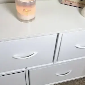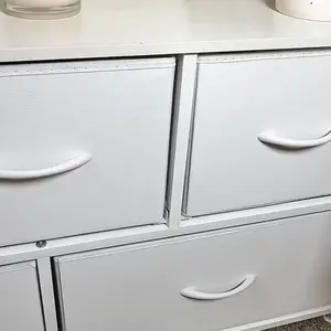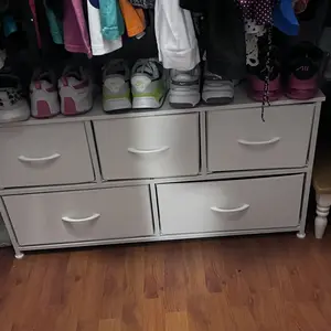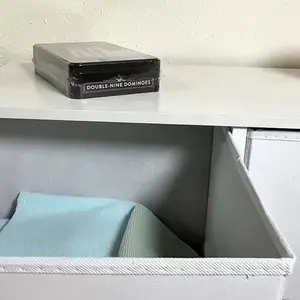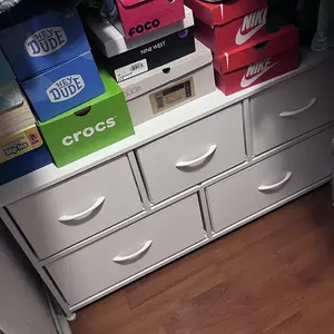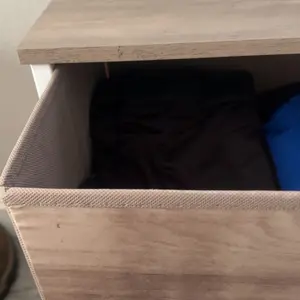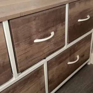 Excelente para guardar calsetas O cualquier otra cosa, súper práctica. la parte de arriba es madera y los cajones son de simulación de tela.