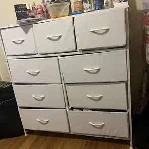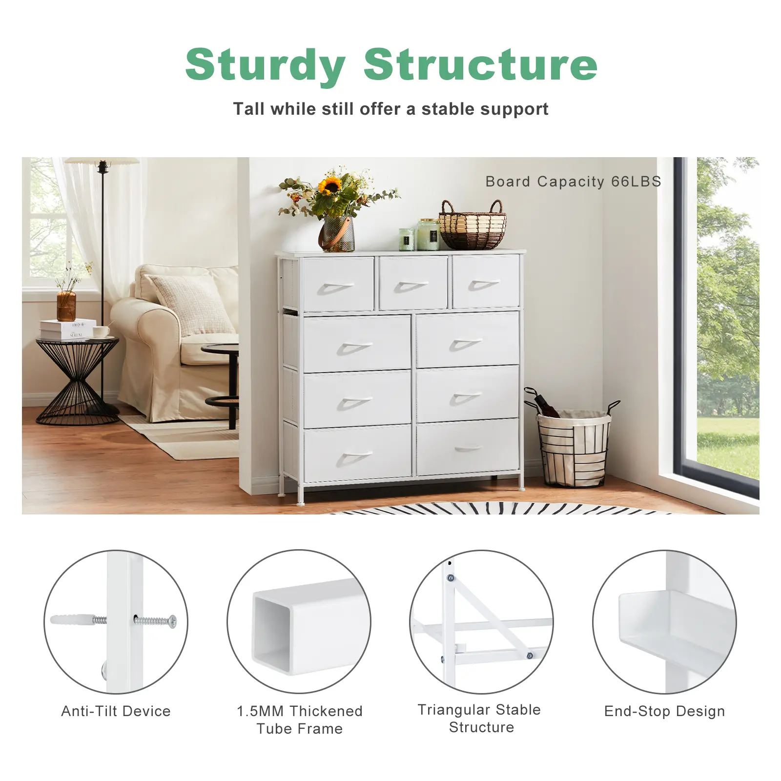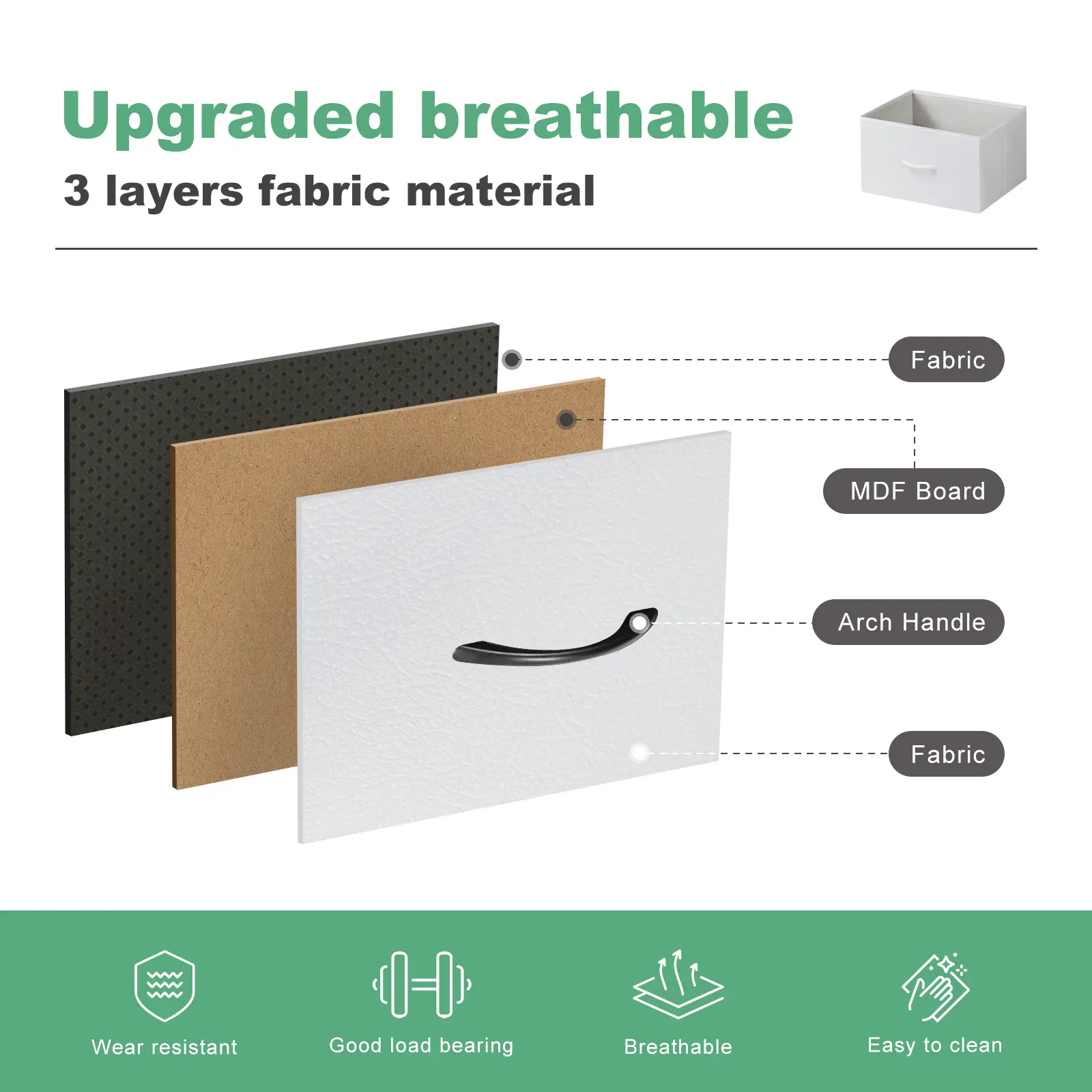 ·[Quality Construction] This fabric dresser combines water-resistant MDF board with a durable steel frame, triangular stable structures to make it sturdy under load 66lb. Anti-tipping accessories are also equipped to prevent accidents.