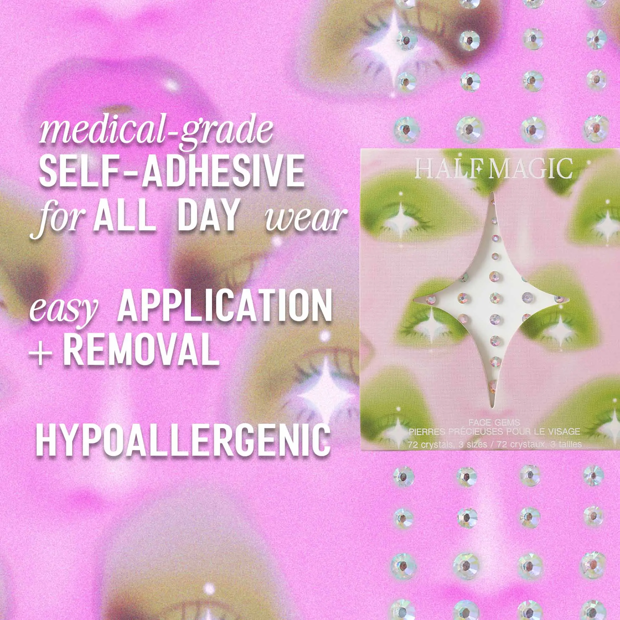 I received the Half Magic - Face Gems | Iridescent Sparkle they are gorgeous. I am impressed! These gems stayed put through the New York humidity. I can't say enough good things about these gems! They will stick on all day. They literally do not budge. Very easy to apply and remove. Gorgeous gems!