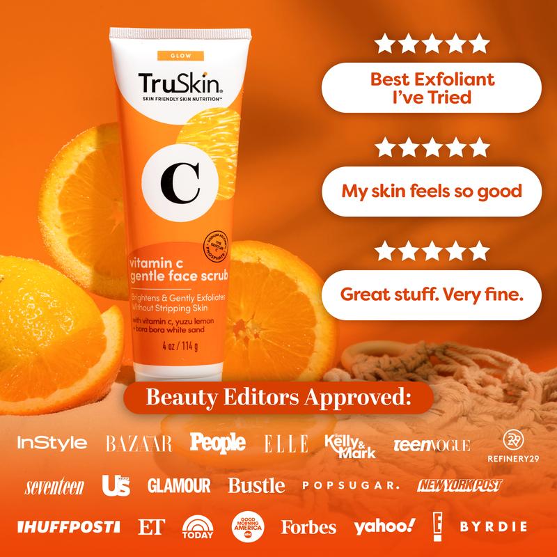 #TruSkin #VitaminCScrub #FaceExfoliator #DailyExfoliant #BrighteningScrub #GentleExfoliation #FragranceFreeSkincare #GlowingSkin #CrueltyFreeBeauty #DermatologistTested