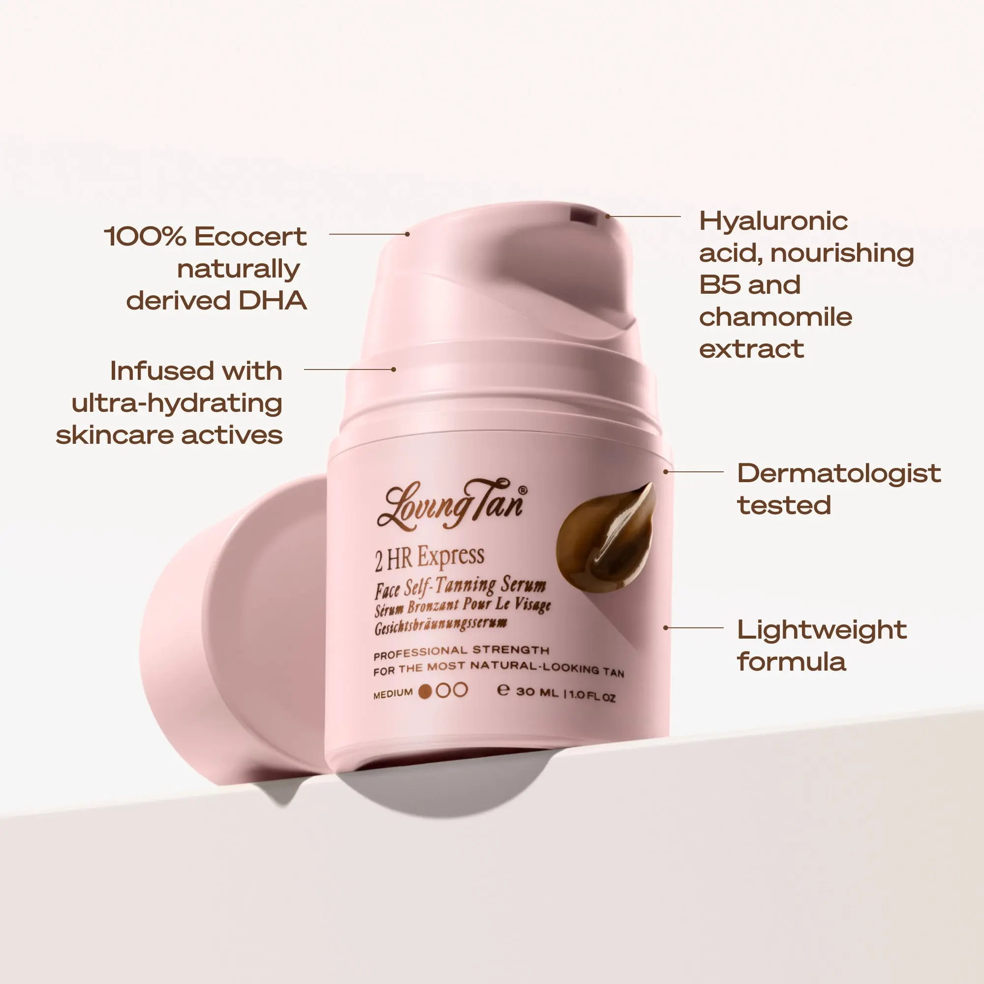 | Ingredients | WATER (AQUA/EAU),DIHYDROXYACETONE,CETEARYL ALCOHOL,ETHOXYDIGLYCOL,GLYCERIN,SIMMONDSIA CHINENSIS (JOJOBA) SEED OIL,COCO-CAPRYLATE/CAPRATE,SQUALANE,GLYCERYL STEARATE,SODIUM HYALURONATE,CHAMOMILLA RECUTITA (MATRICARIA) FLOWERS EXTRACT,PANTHENOL,TOCOPHERYL ACETATE,SHOREA ROBUSTA RESIN,RHUS VERNICIFLUA PEEL CERA/ RHUS SUCCEDANEA FRUIT WAX/CERA,CETEARETH-20,HELIANTHUS ANNUUS (SUNFLOWER) SEED CERA/WAX,SORBITAN OLEATE,OLEA EUROPAEA (OLIVE) OIL UNSAPONIFIABLES,HYDROXYETHYL ACRYLATE/SODIUM ACRYLOYLDIMETHYL TAURATE COPOLYMER,FRAGRANCE (PARFUM),ETHYLHEXYLGLYCERIN,SODIUM BENZOATE,PHENOXYETHANOL,SODIUM METABISULFITE,BENZYL BENZOATE,COUMARIN,LIMONENE,FD&C RED NO. 40 (CI 16035),FD&C BLUE NO.1 (CI 42090),FD&C YELLOW NO. 5 (CI 19140). |