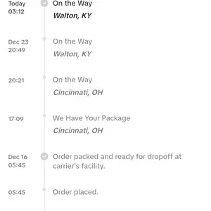 I ordered this on 12/16, label not created until 12/19. I was supposed to receive by 12/23. Package was not shipped until 12/23. I didn't receive until 12/27. It was for my niece for xmas. She went back home to another state. A waste. Never again with this seller!