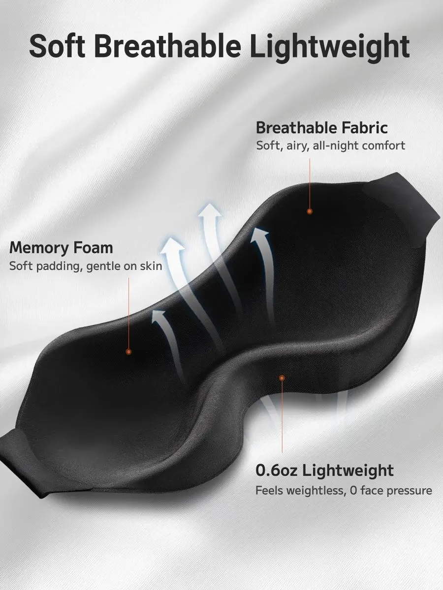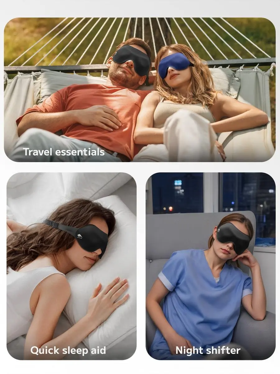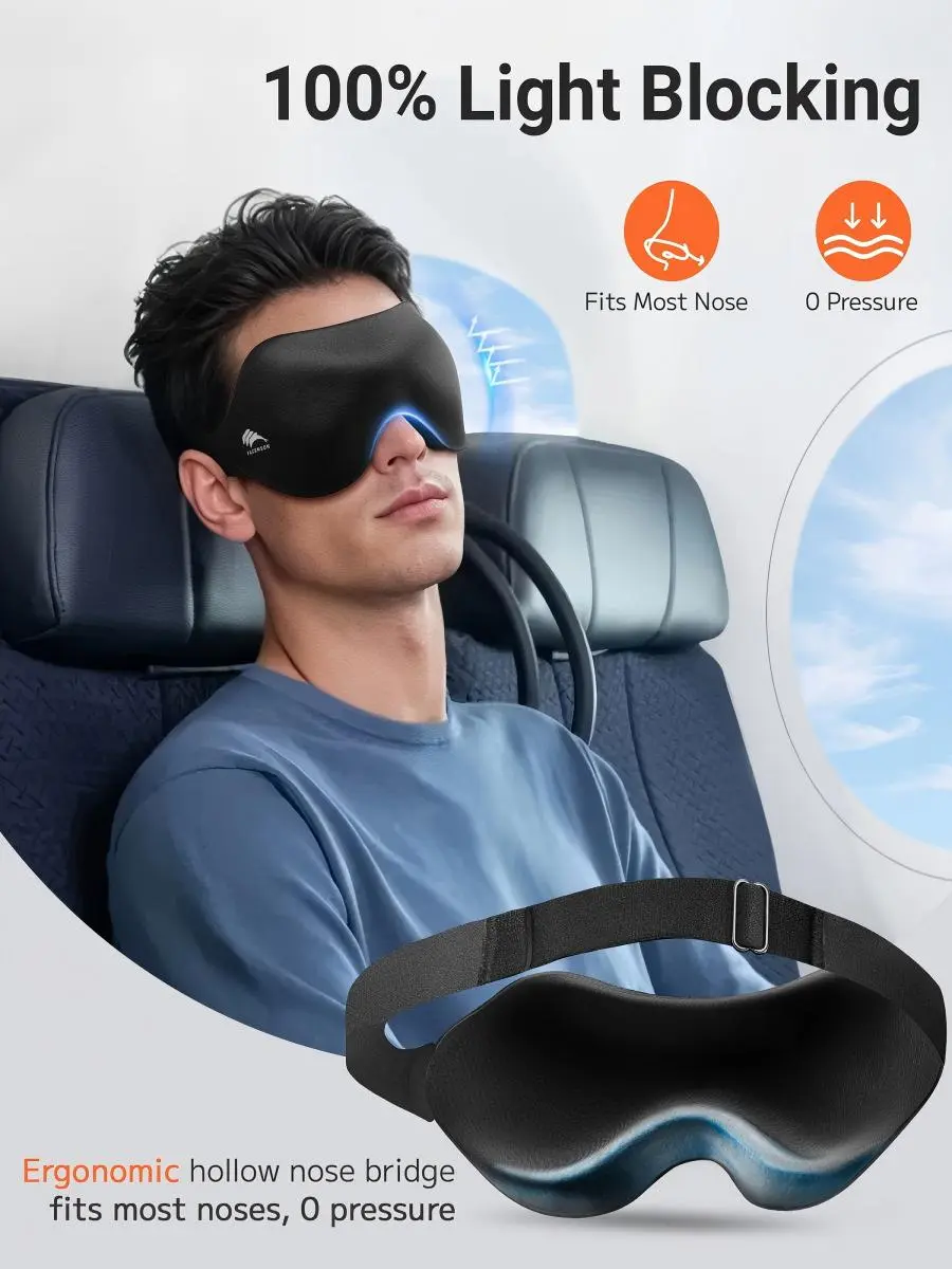 ·100% Blackout Sleep – 3D contoured design and nose bridge block out light for deep, uninterrupted rest—perfect for travel, naps, and night shifts.
