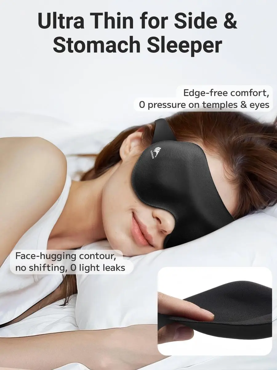 ·Side Sleeper Friendly – Slim sides and adjustable strap keep the mask secure without pressing on temples or ears.