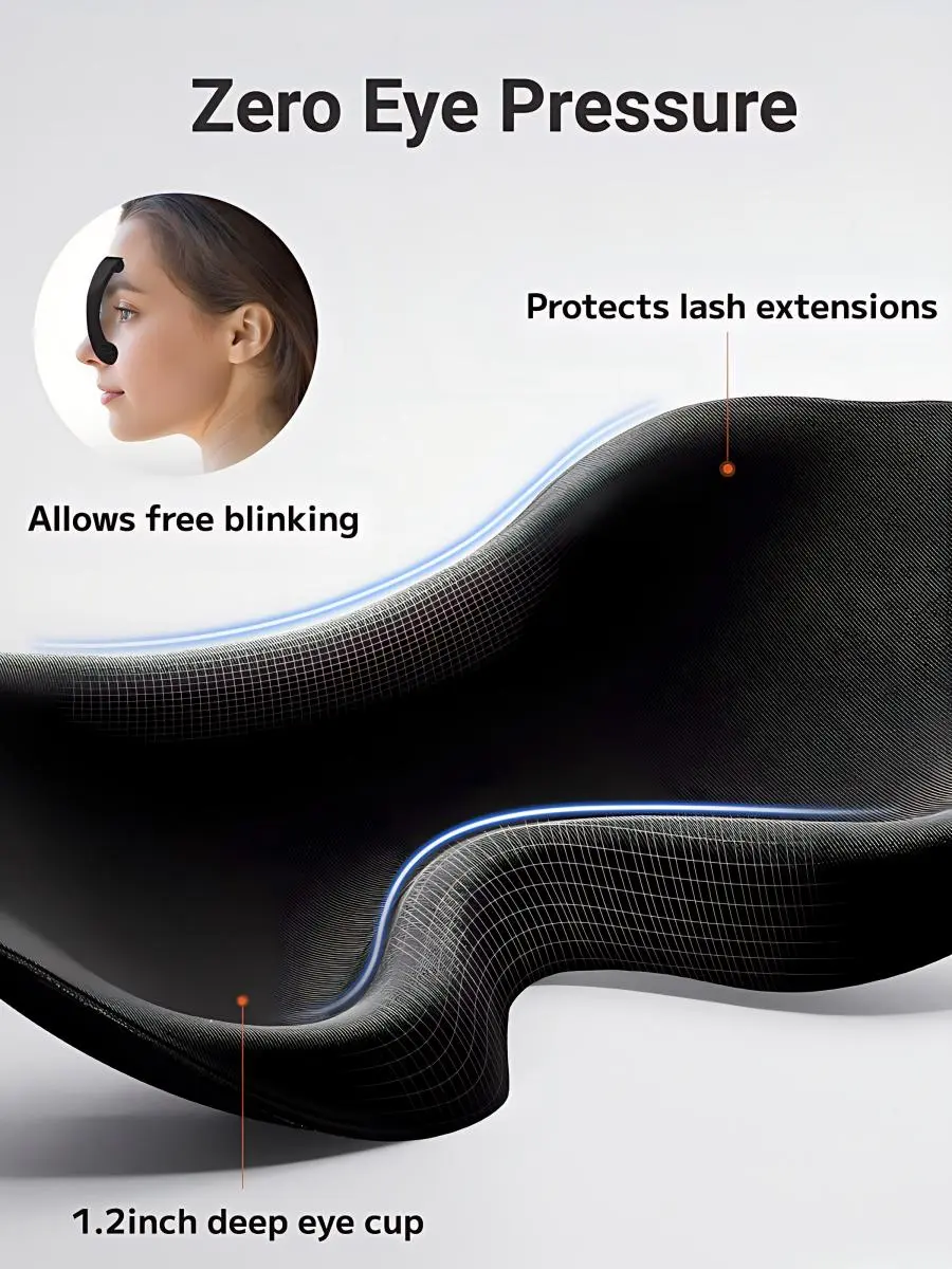 ·Zero Pressure On Eyes – Soft memory foam and deep eye cups prevent pressure on eyelids and lashes for all-night comfort.