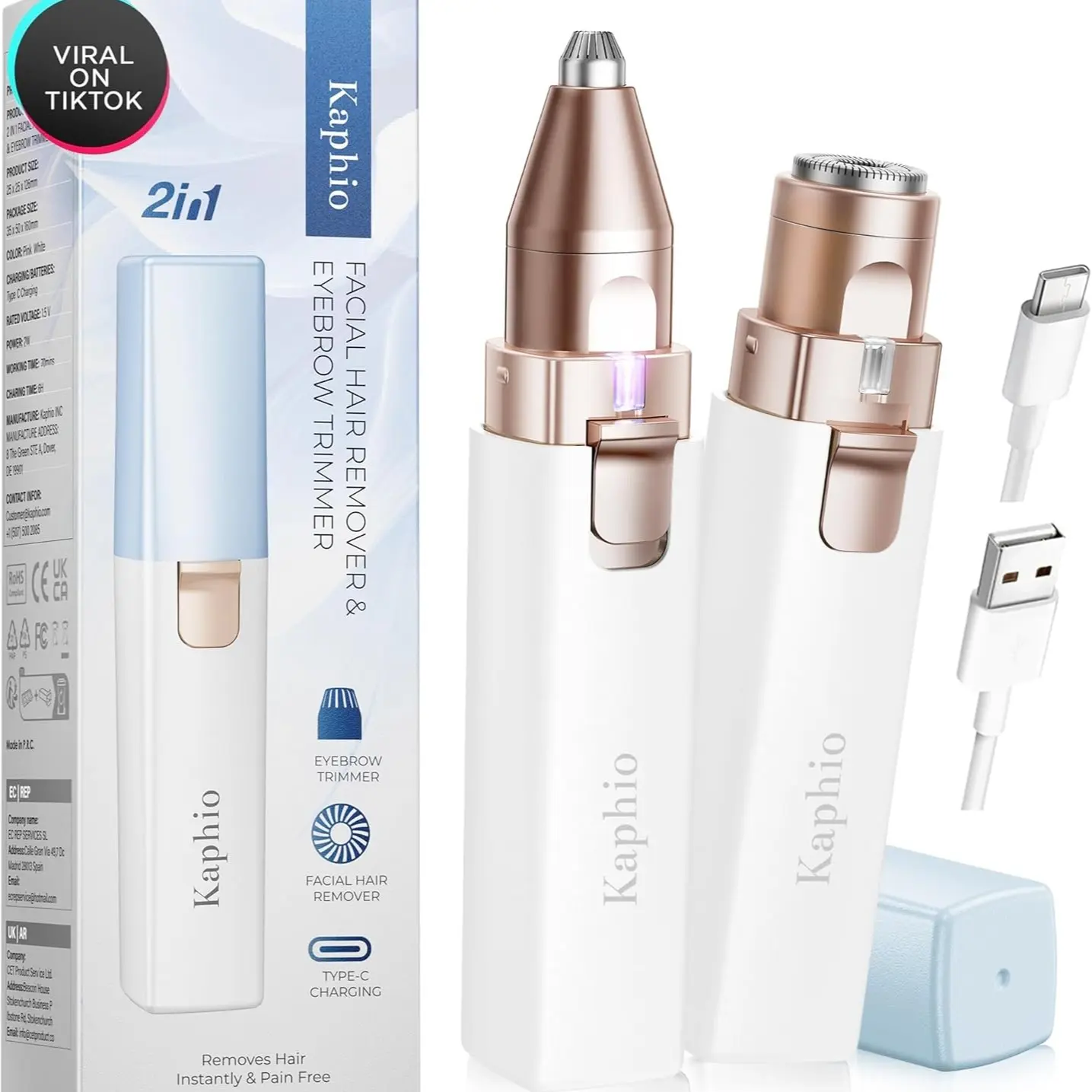 ·GENTLE & PAIN FREE: Kaphio Painless 2 in 1 women's hair remover is perfect for daily use to keep skin smooth and hair free, specifically designed for face eyebrows upper & lower lip cheeks chin and neck
