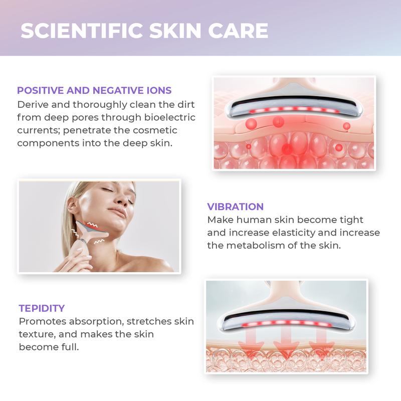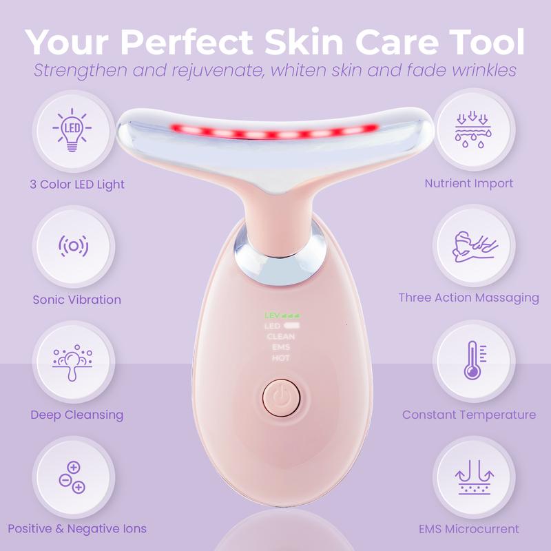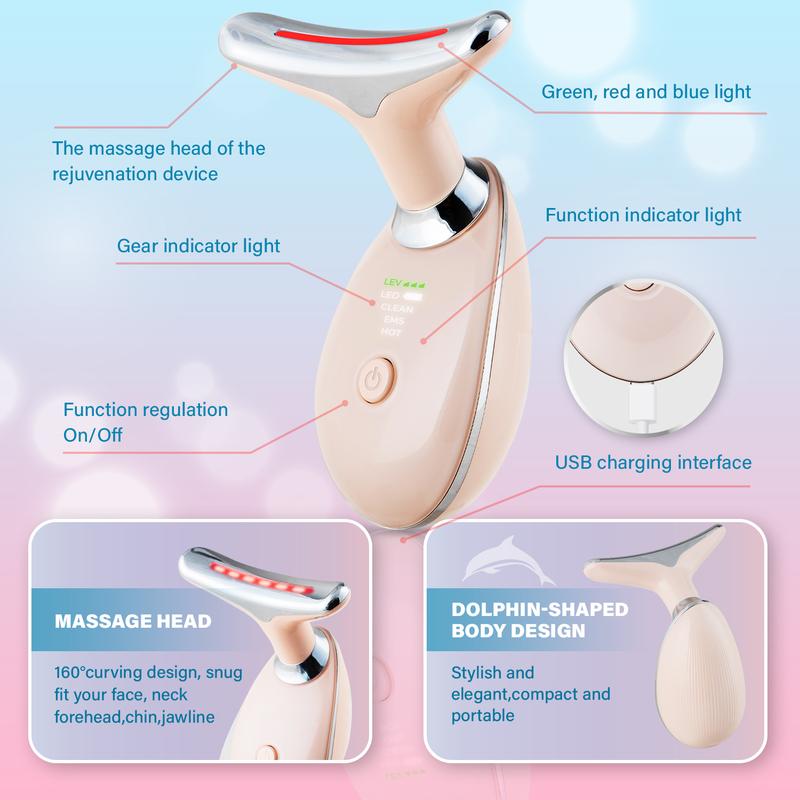 Versatile Facial Massager: Experience the ultimate in skincare with our Multifunctional Facial Massager, equipped with three massage modes and seven LED light colors to cater to your unique needs. This device effectively enhances blood circulation, alleviates facial fatigue, firms the skin, and diminishes the appearance of fine lines and wrinkles.