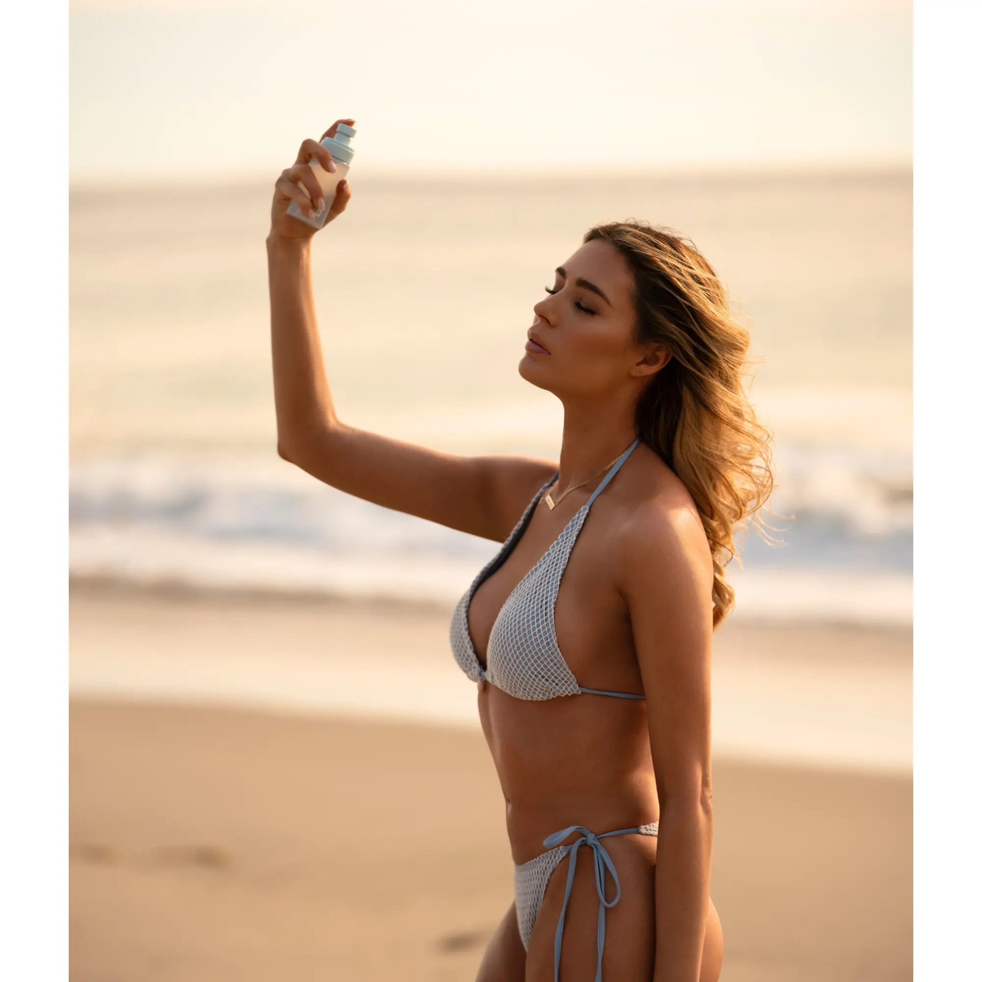 glow whenever, wherever 🌊 perfect for travel, your daily routine, and on-the-go hydration. spritz our BAEside hydrating sea mist like @Ellie Thumann for an instantly dewy glow that develops over time.  #sunneebaeskin #beach #summer #selftan #glowingskin