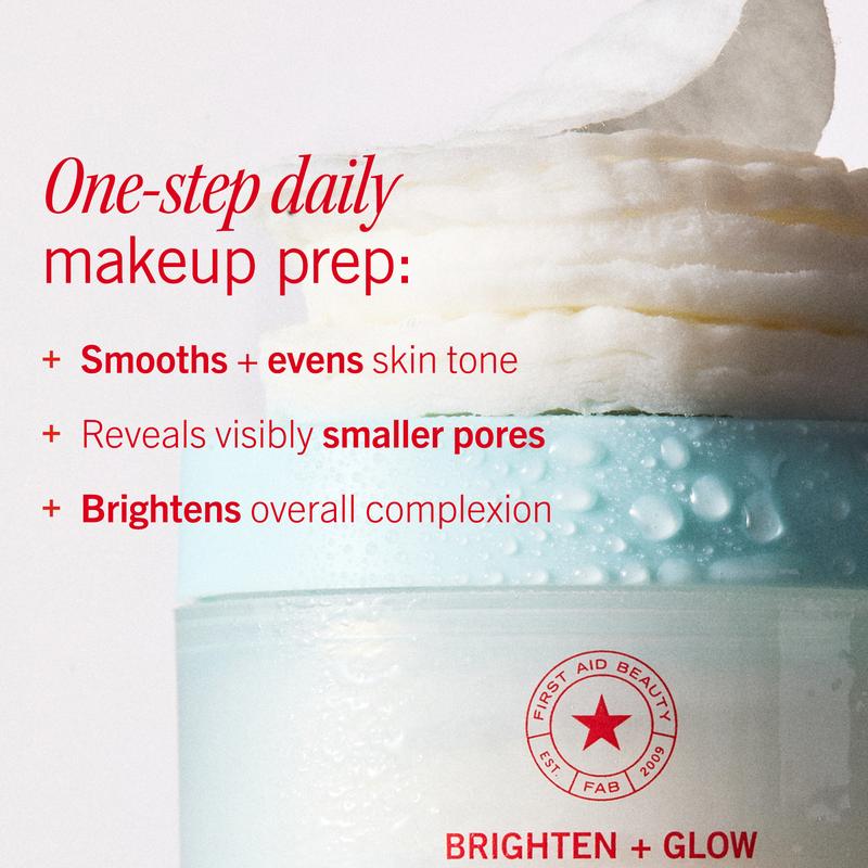 Sensitive skin-friendly + gentle face exfoliating pads with a blend of AHAs designed for daily use to help brighten, smooth and prep skin for makeup.