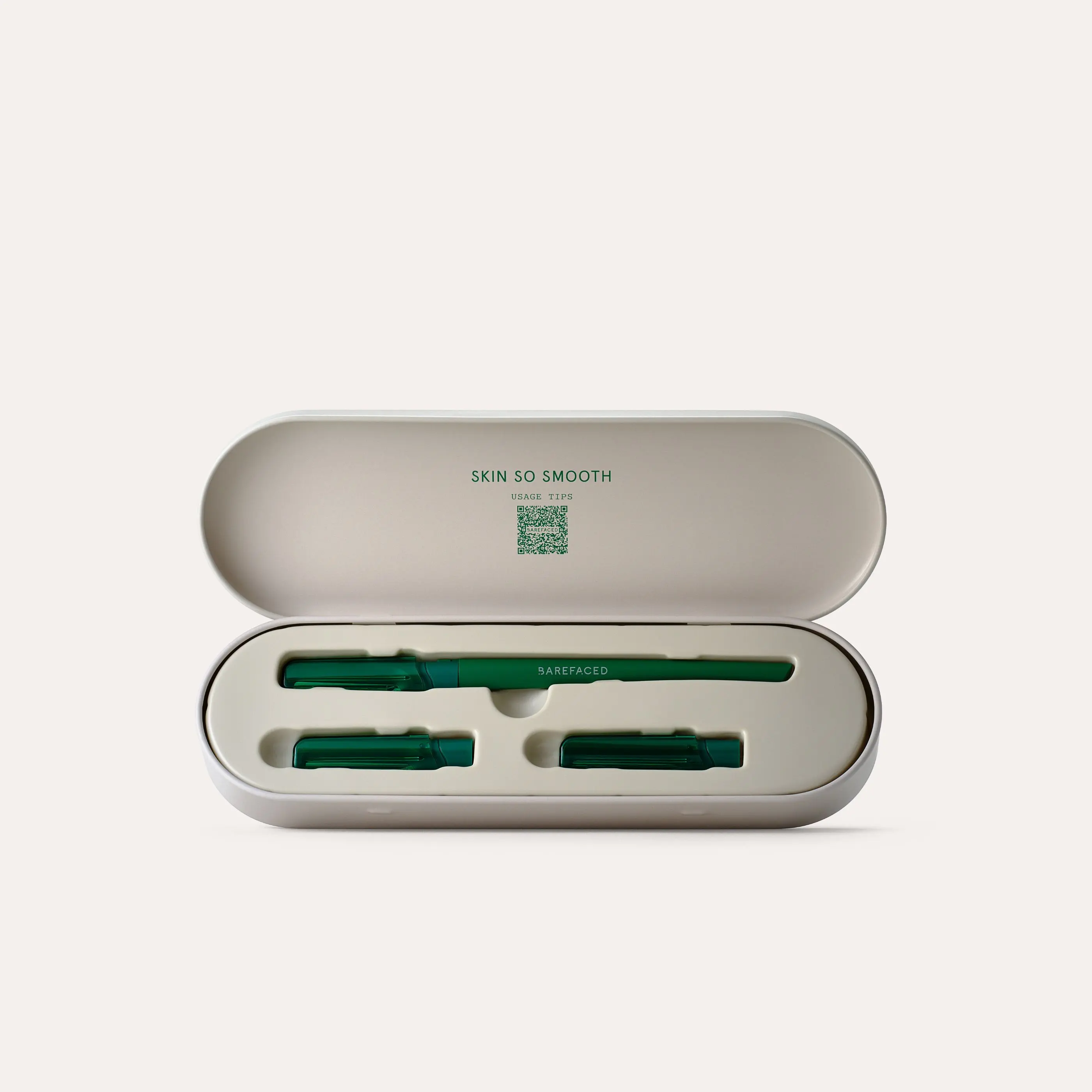 Tired of dull, uneven skin and unwanted peach fuzz? The Barefaced Facial Razor is the perfect solution to reveal smoother, brighter skin with ease. This innovative tool removes dead skin cells and peach fuzz, revealing instantly smoother, brighter skin. Razor includes 1 handle and 3 blades.