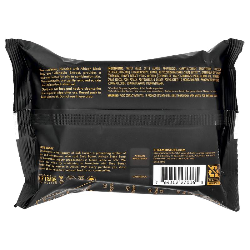 5. SheaMoisture African Black Soap, Clarifying Facial Wipes With Calendula, Fragrance Free, 30 Cleansing Wipes