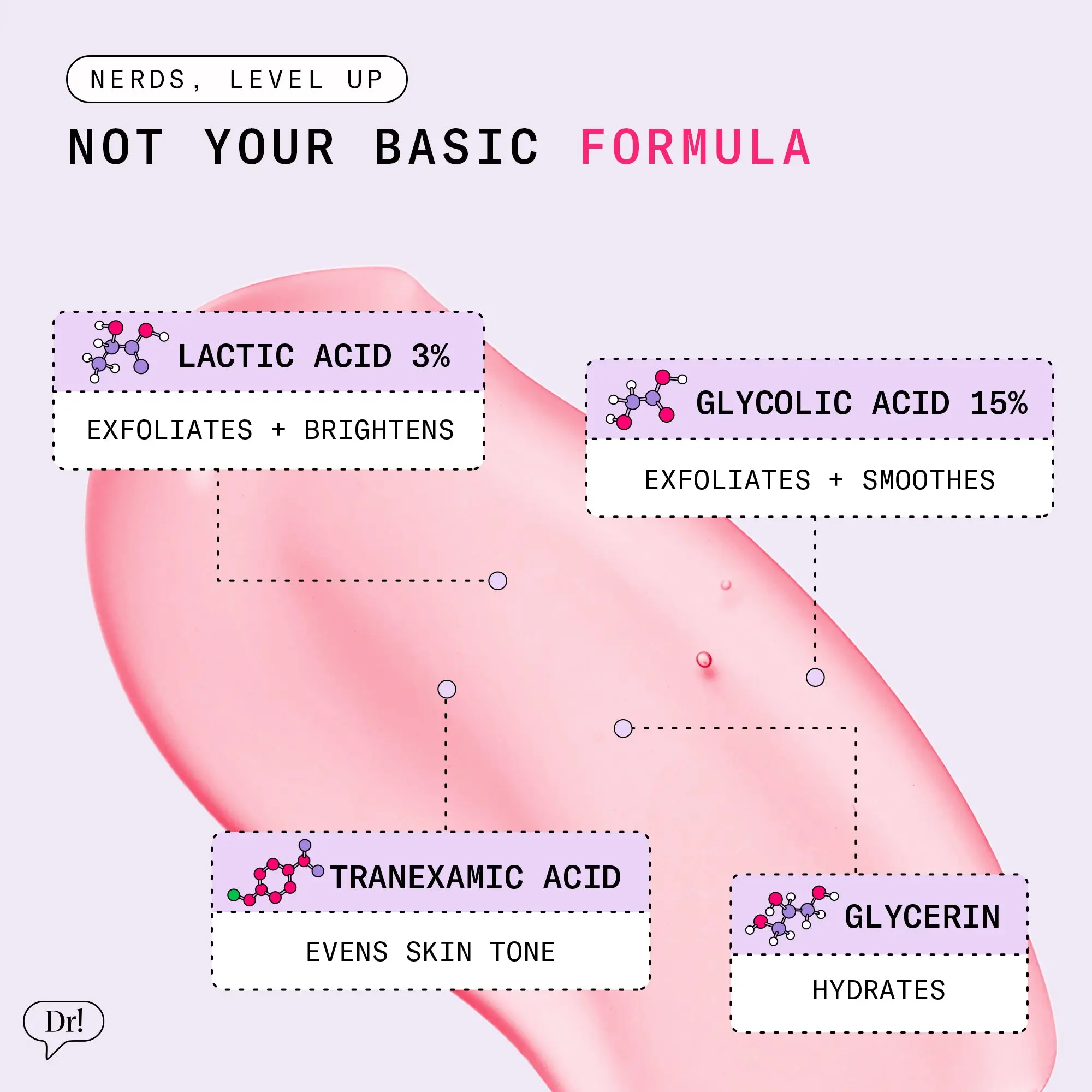 Exfoliates without dehydrating, skin is clearer and dark spots fade over time.